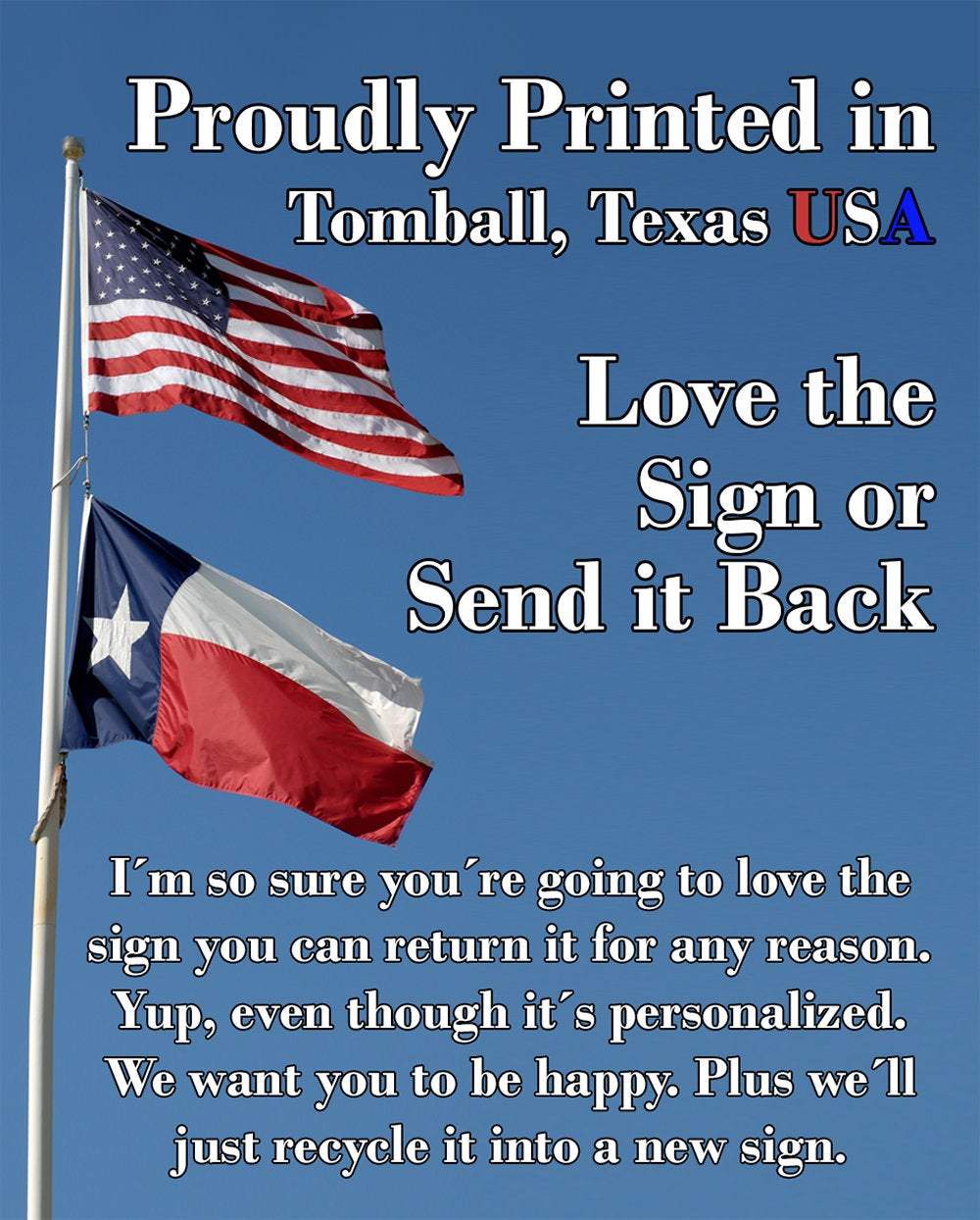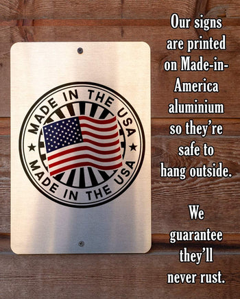 Durable - 8" x 12" or 12" x 18" Aluminum metal sign printed with epoxy ink so you can hang it inside or outside