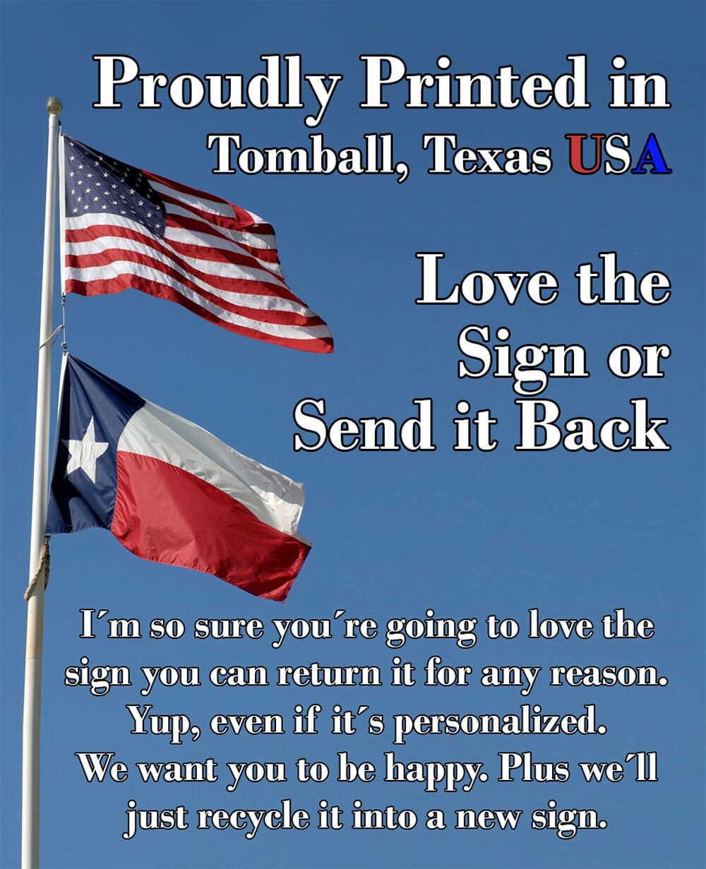 Made in the USA (Tomball, Texas) in our family-owned shop