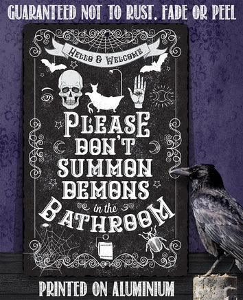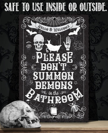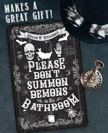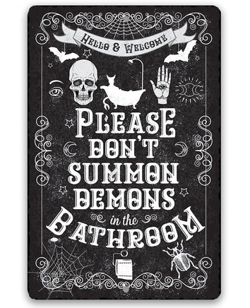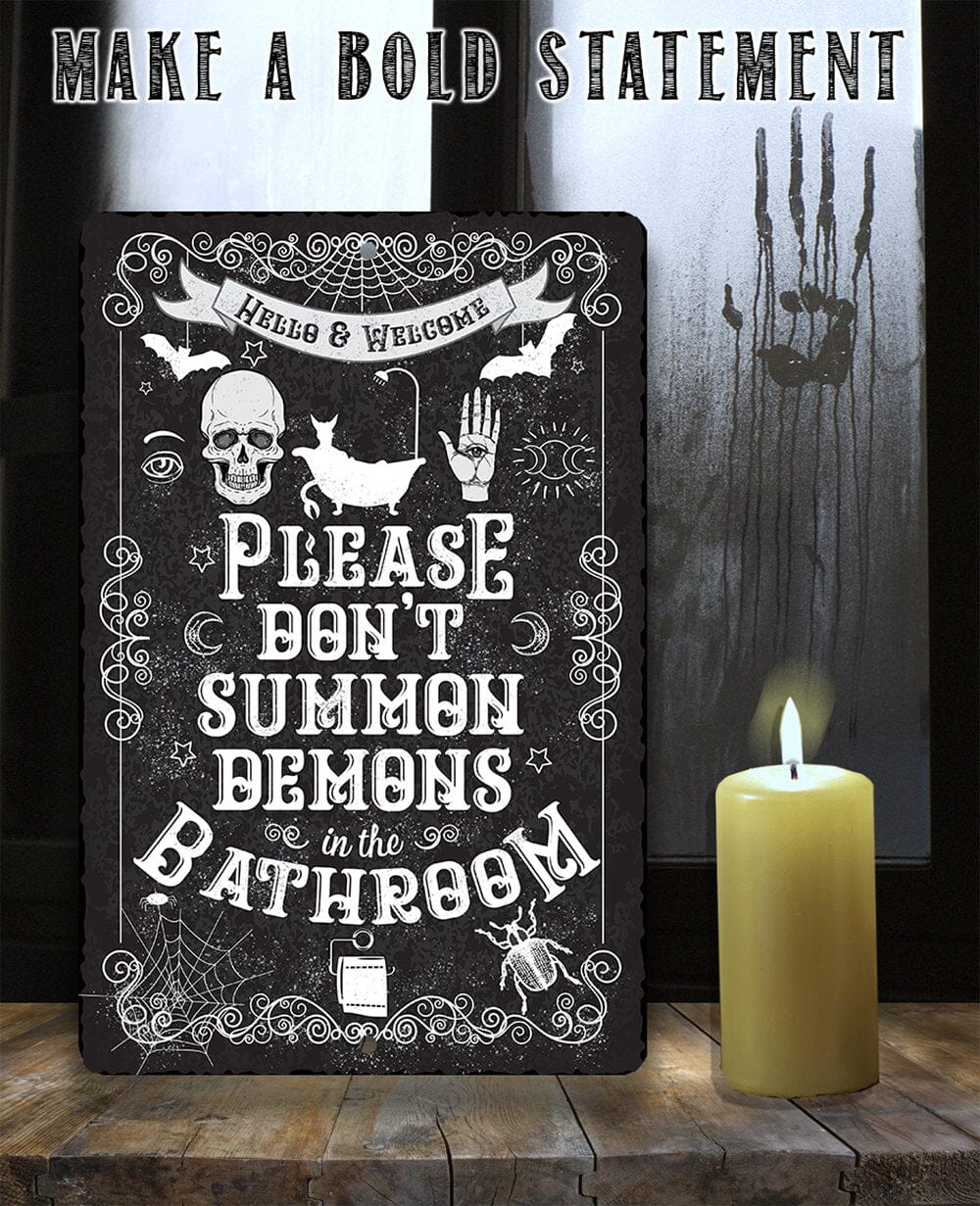 Bathroom Signs - Please Don't Summon Demons - Durable Metal Sign - 8" x 12" or 12" x 18" Aluminum Tin Awesome Metal Poster
