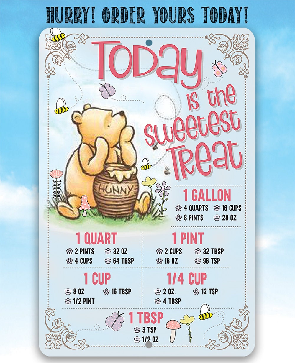 Metal Sign - Pooh - Today is The Sweetest Treat - Durable Metal Sign - Use Indoor/Outdoor - Makes a Great Honey Store Sign and Decor