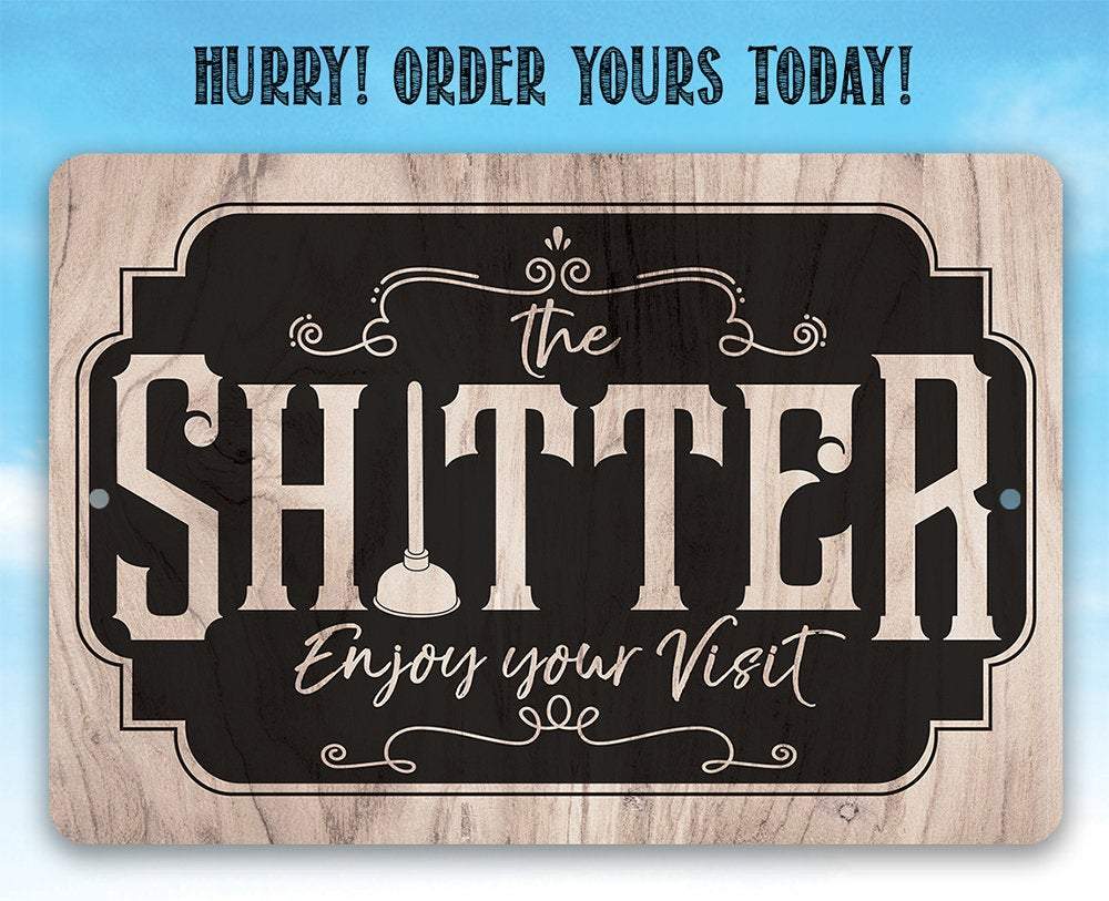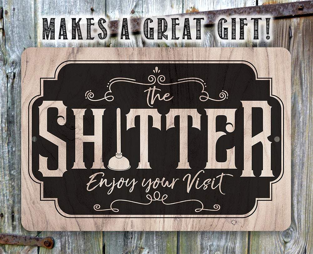 Tin - Metal Sign - Shitter Wooden Style - 8"x12" or 12"x18" Use Indoor/Outdoor - Funny Bathroom Décor