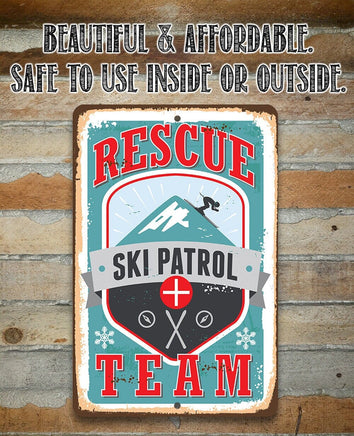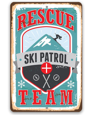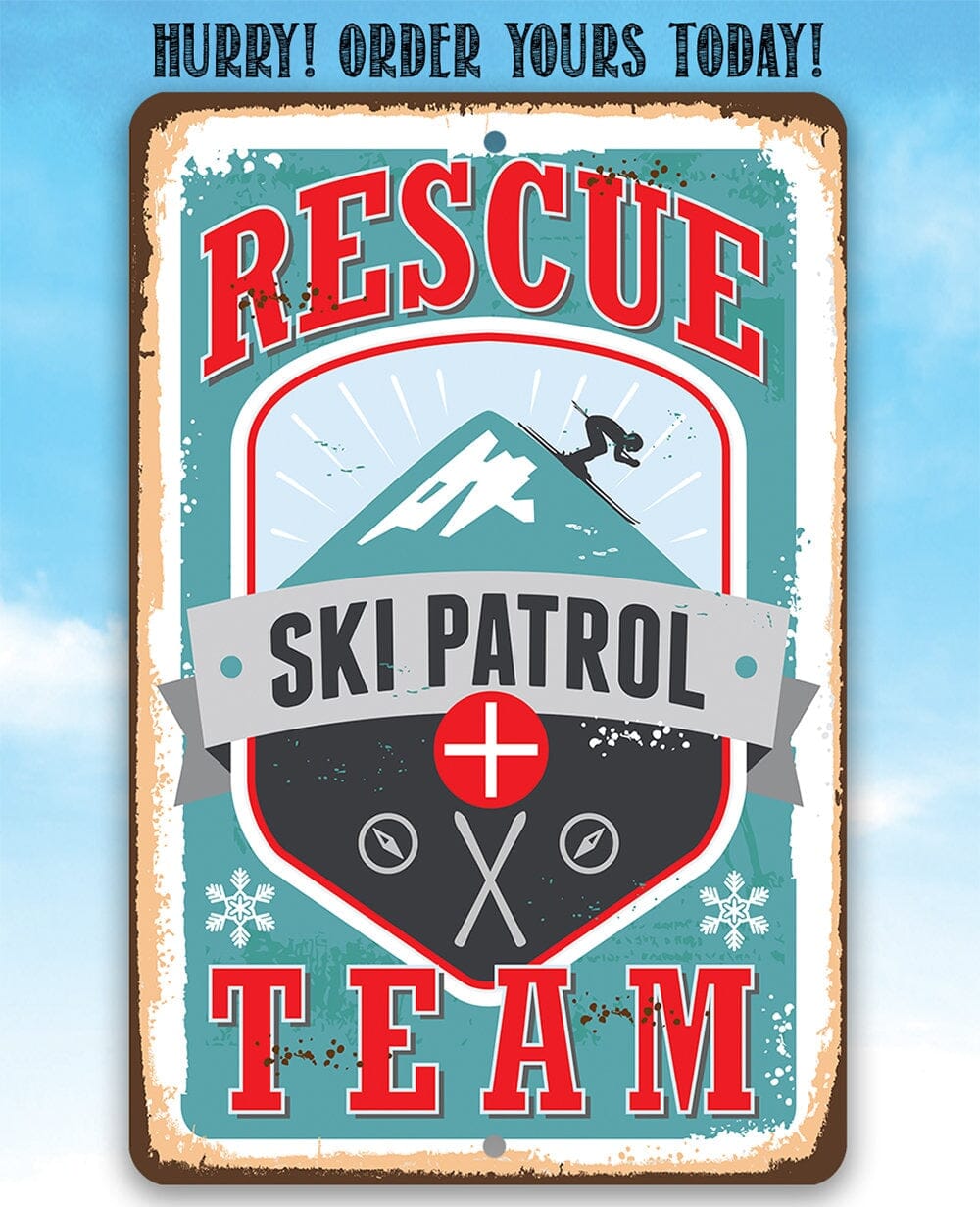 Ski Patrol Rescue Team - Rustic Style Emergency Response Unit Sign 8" x 12" or 12" x 18" Aluminum Tin Awesome Metal Poster