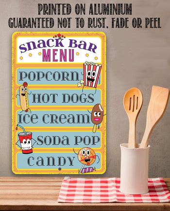 Snack Bar Menu-Metal Sign-8"x12"/12"x18" Indoor/Outdoor - Snack Bar, Canteen, Concession Stand Decor