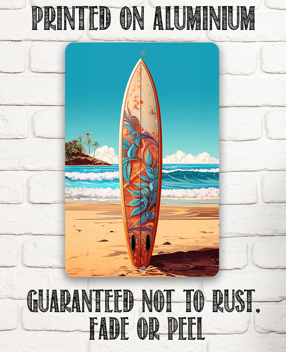 Tin - Surf's Up - Beach House and Summer Surfing Decor - Durable Metal Sign - 8" x 12" or 12" x 18" Aluminum Awesome Metal Poster