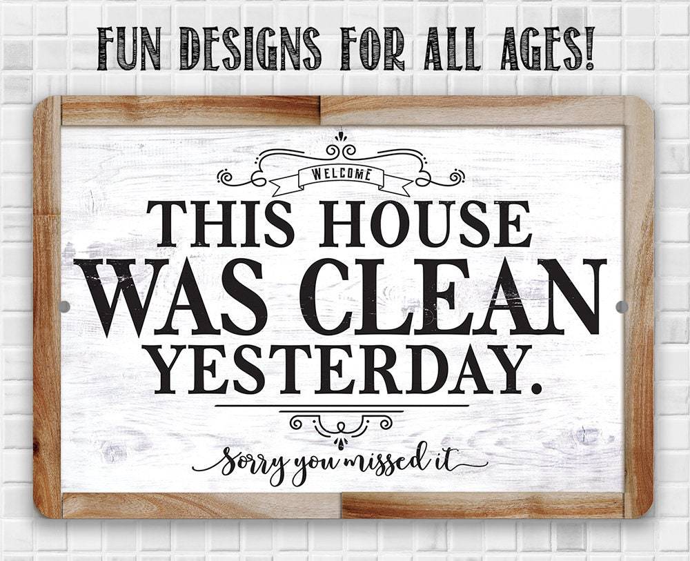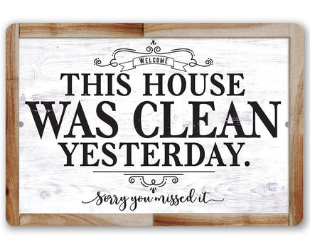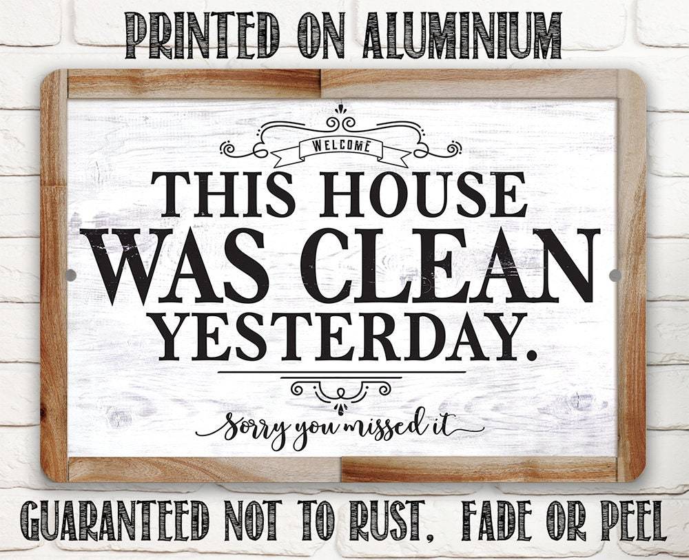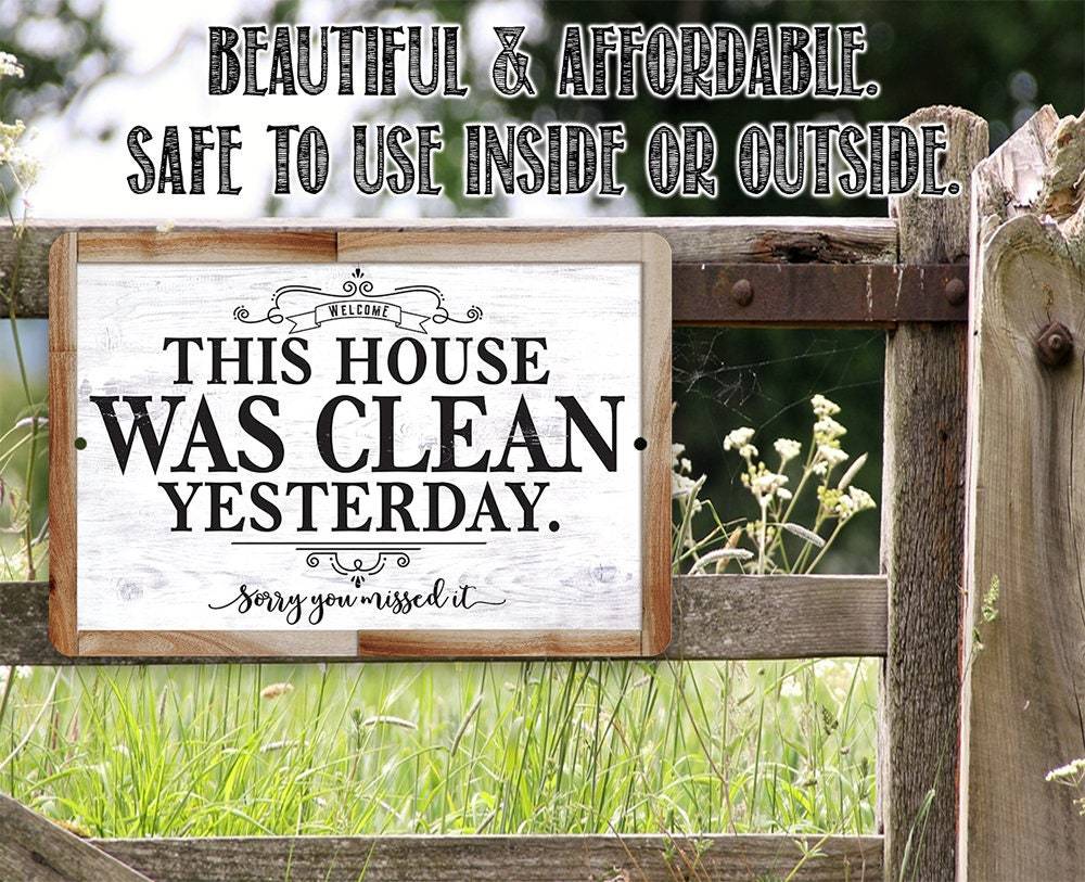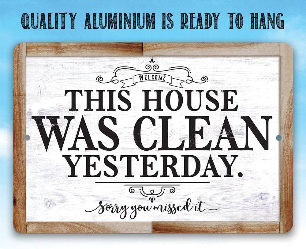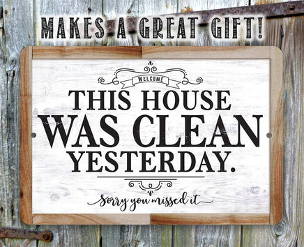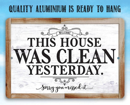 Tin - Metal Sign - This House Was Clean Yesterday - (Not Printed on Wood) - 8"x12"/12"x18" Use Indoor/Outdoor - Funny Living Room Decor