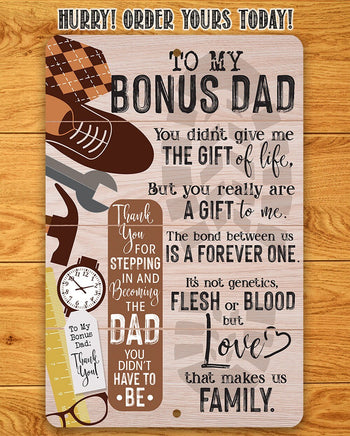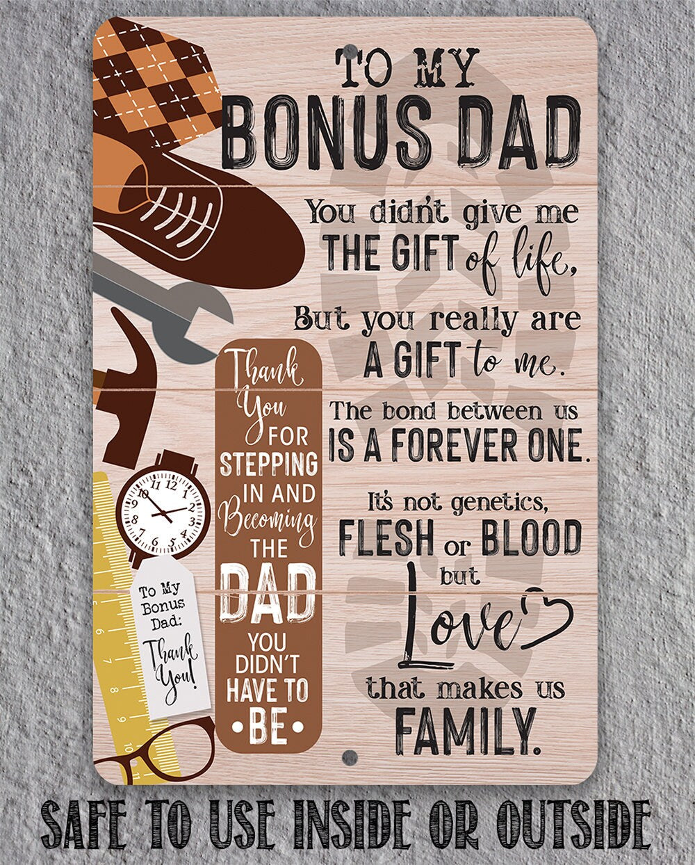 To My Bonus Dad - Durable Metal Sign - 8" x 12" or 12" x 18" Aluminum Tin Awesome Metal Poster
