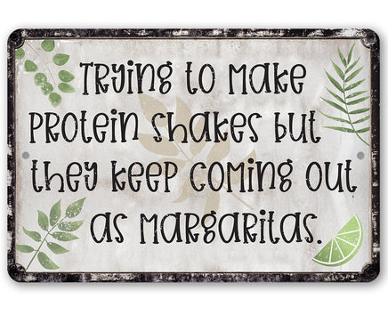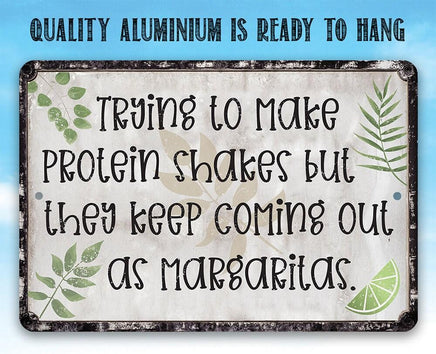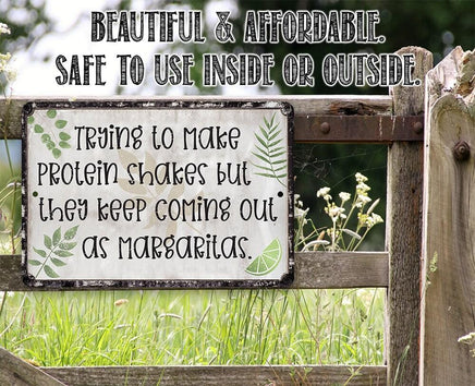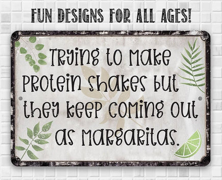 Metal Sign - Trying To Make Protein Shakes - 8" x 12" or 12" x 18" - Durable Tin - Use Indoor/Outdoor - Funny Home Bar Decor