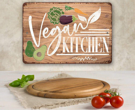 Vegan Kitchen-Durable Metal Sign-8" x 12"or12" x 18" Use Indoor/Outdoor-Great Vegan Kitchen Decor
