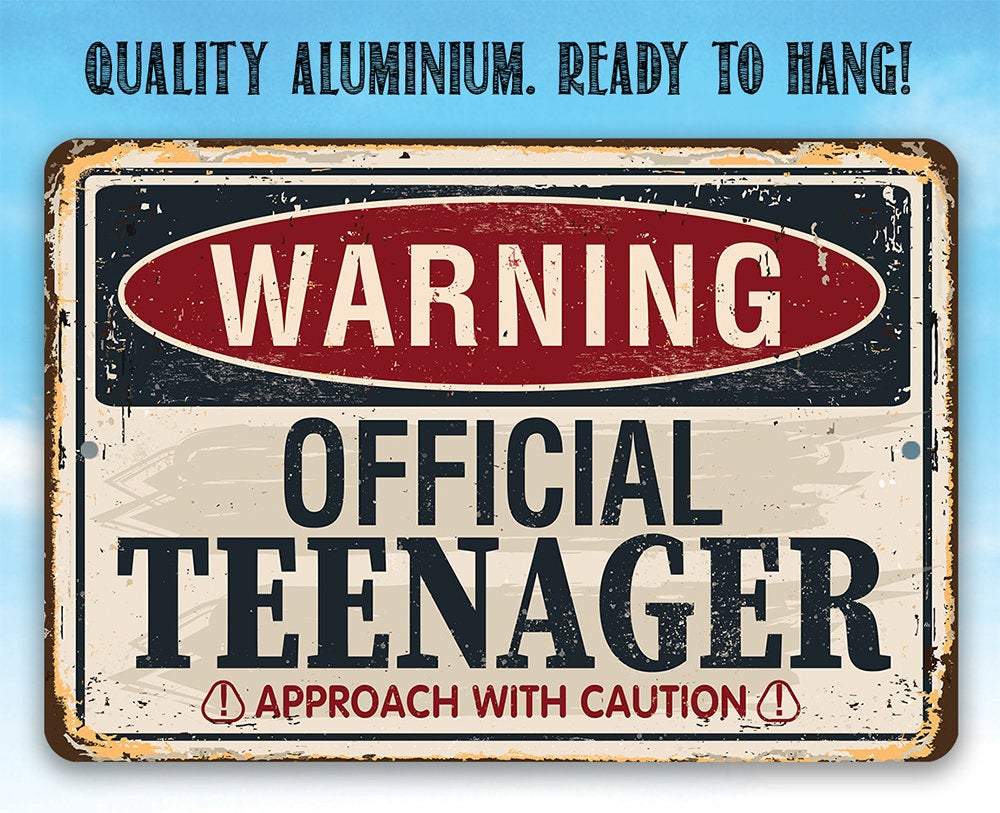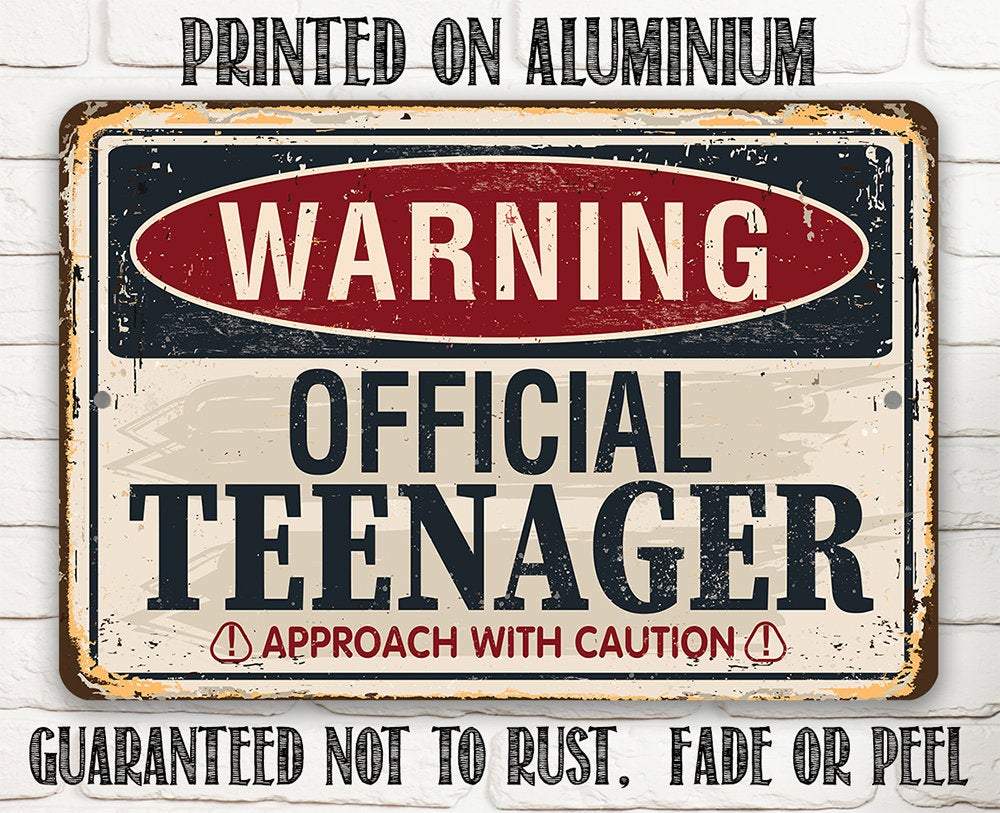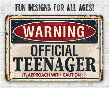 Tin - Metal Sign - Warning Official Teenager - 8"x12" or 12"x18" Use Indoor/Outdoor - Teen's Bedroom