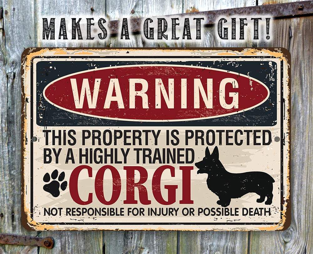Tin - Metal Sign-Warning Property Corgi-8"x12"/12"x18" Indoor/Outdoor-To Corgi Owners