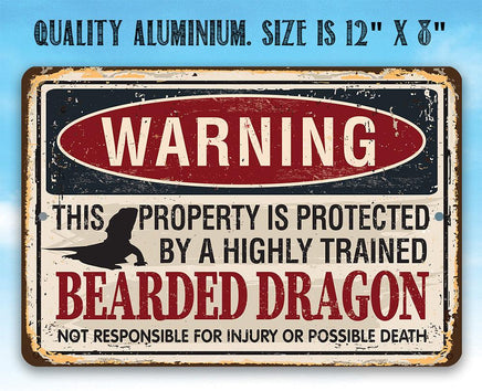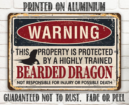 Warning Property Protected By Bearded Dragon-Metal Sign - 8" x 12" or 12" x 18" Indoor/Outdoor-Great Room Decor