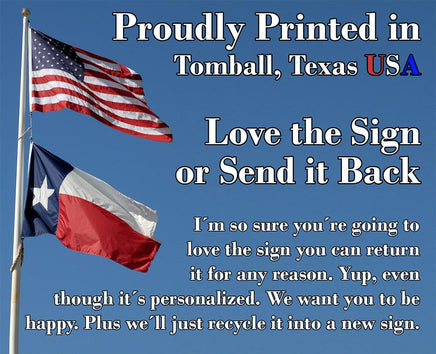 Durable - 8" x 12" or 12" x 18" Aluminum metal sign printed with epoxy ink so you can hang it inside or outside