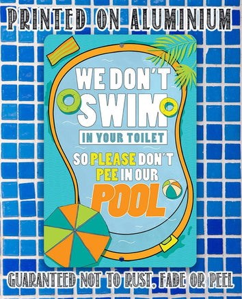 Home → Fun Metal Signs → We Don't Swim In Your Toilet - Metal Sign
