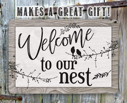 Tin - Welcome To Our Nest - Metal Sign- 8"x12".12"x18" Indoor/Outdoor - Wedding Gift and Bedroom Décor