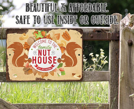 Welcome To The Family Nut House 100% Not Normal Sign - Durable Metal Sign - 8" x 12" or 12" x 18" Use Indoor/Outdoor - Great Funny Gift and Decor for Your Home
