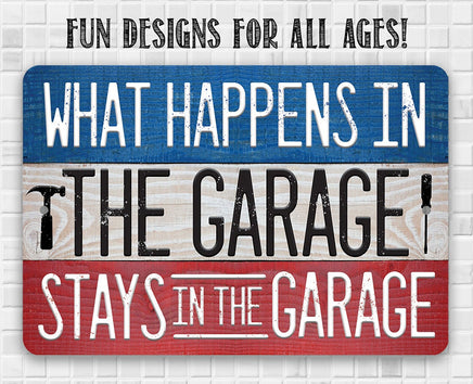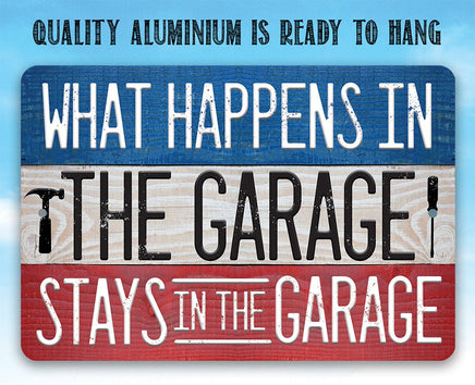 What Happens In The Garage Stays In The Garage - 8" x 12" or 12" x 18" Aluminum Tin Awesome Metal Poster