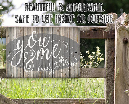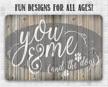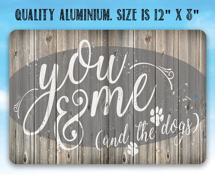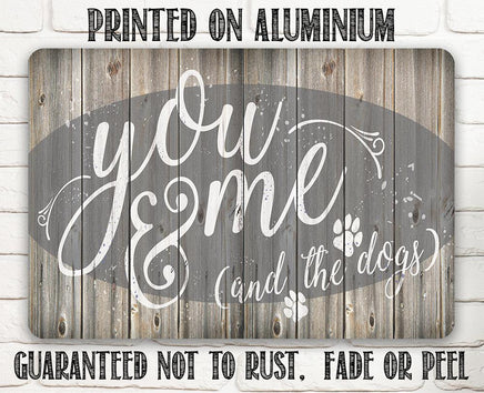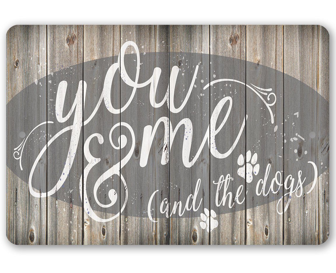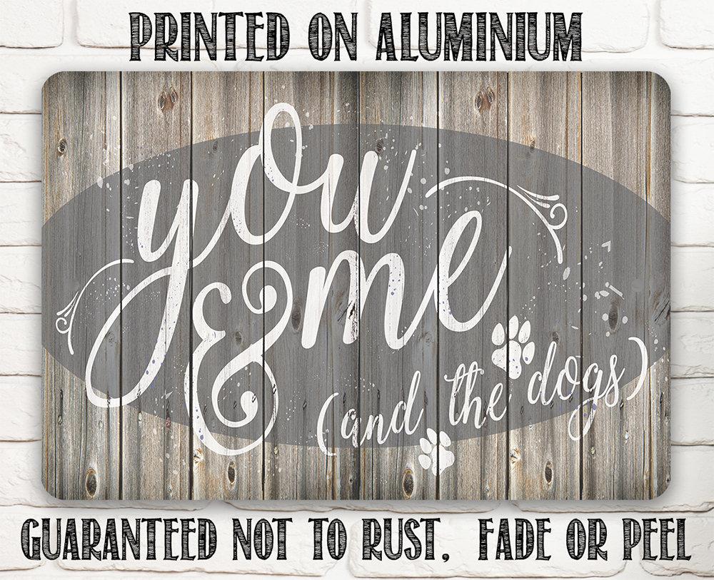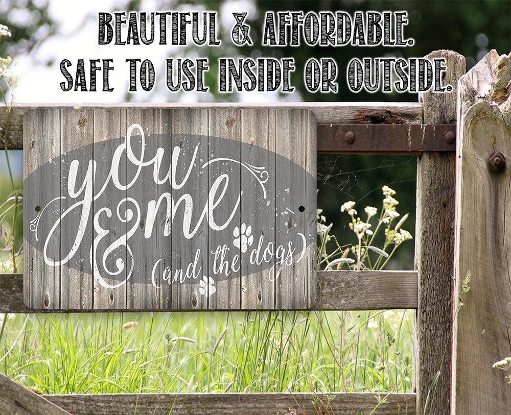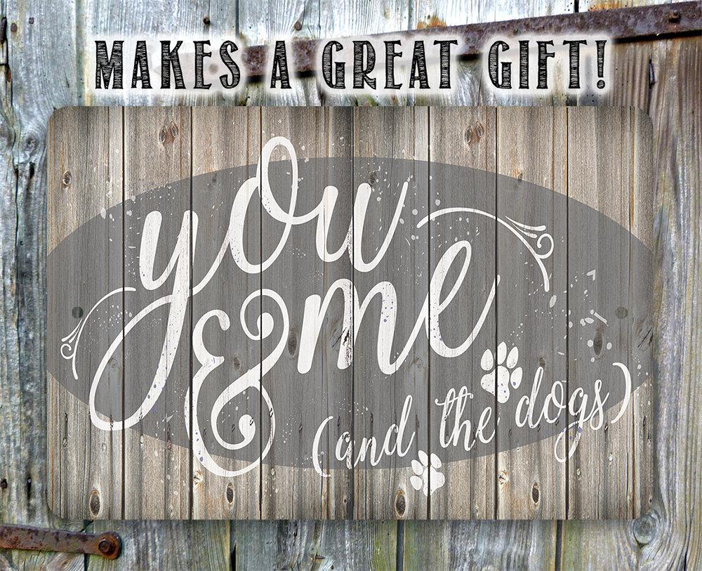 Metal Sign-You Me & The Dogs-Durable Metal Sign- 8" x 12" or 12" x 18" - Use Indoor/Outdoor-Housewarming Gift The Perfect Gift - A truly unique gift guaranteed to bring a smile Durable - 8" x 12" or 12" x 18" Aluminum metal sign printed with epoxy ink so you can hang it inside or outside Easy to Hang - Comes with two screw holes and it's light enough to be mounted with double-sided foam tape or Command Strips. Guarantee - I´m so sure you´re going to love the sign. Made in the USA (Tomball, Texas) in our family-owned shop