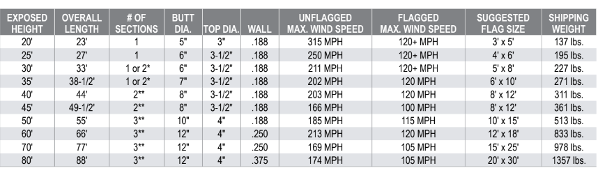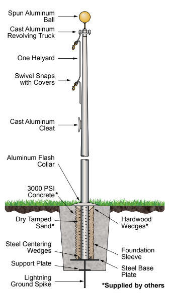 External Halyard Ground Set Cone Tapered Aluminum Flagpoles