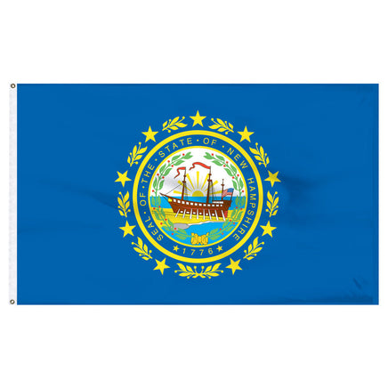 New Hampshire flags are printed single-face reverse on high quality 200 denier nylon | Printed using proprietary deep-penetrating acid dye inks for vibrant, long-lasting color