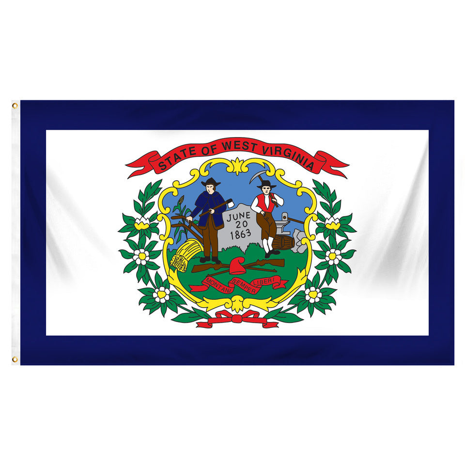 Elevate your outdoor space with our premium all-weather West Virginia flags, proudly distributed by a veteran-owned and operated business. Crafted for durability and strength, these flags are available in Sewn Nylon or Poly-Extra Polyester options, with sizes ranging from 2'x3' to 12'x18'. Perfect for homes, businesses, or events, our flags withstand harsh weather conditions while showcasing vibrant red, white, green, blue, and gold colors with the iconic historic logo.