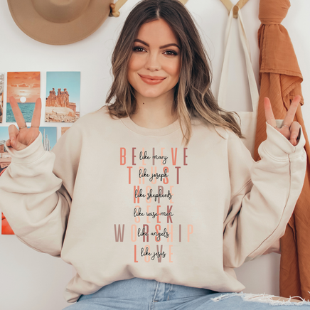 Believe Trust Hope Seek Worship Love Ready To Press DTF Transfers, DTF Hot Peel