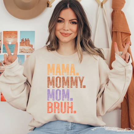 Home → Ready to Press → Mama. Mommy. Mom. Bruh. Retro Colorful Ready To Press DTF Transfers, DTF Hot Peel