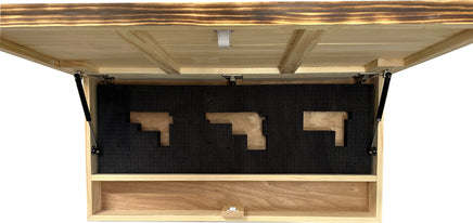 Show off your American pride with this handcrafted, U.S.A made American Flag Challenge Coin Display and Hidden Gun Cabinet. With the ability to hold 100 coins on the outside and a secret compartment inside for your guns and accessories, this large patriotic art piece is both functional and beautiful. The innovative lock ensures security and requires no maintenance, while the customizable foam insert keeps your guns in place.