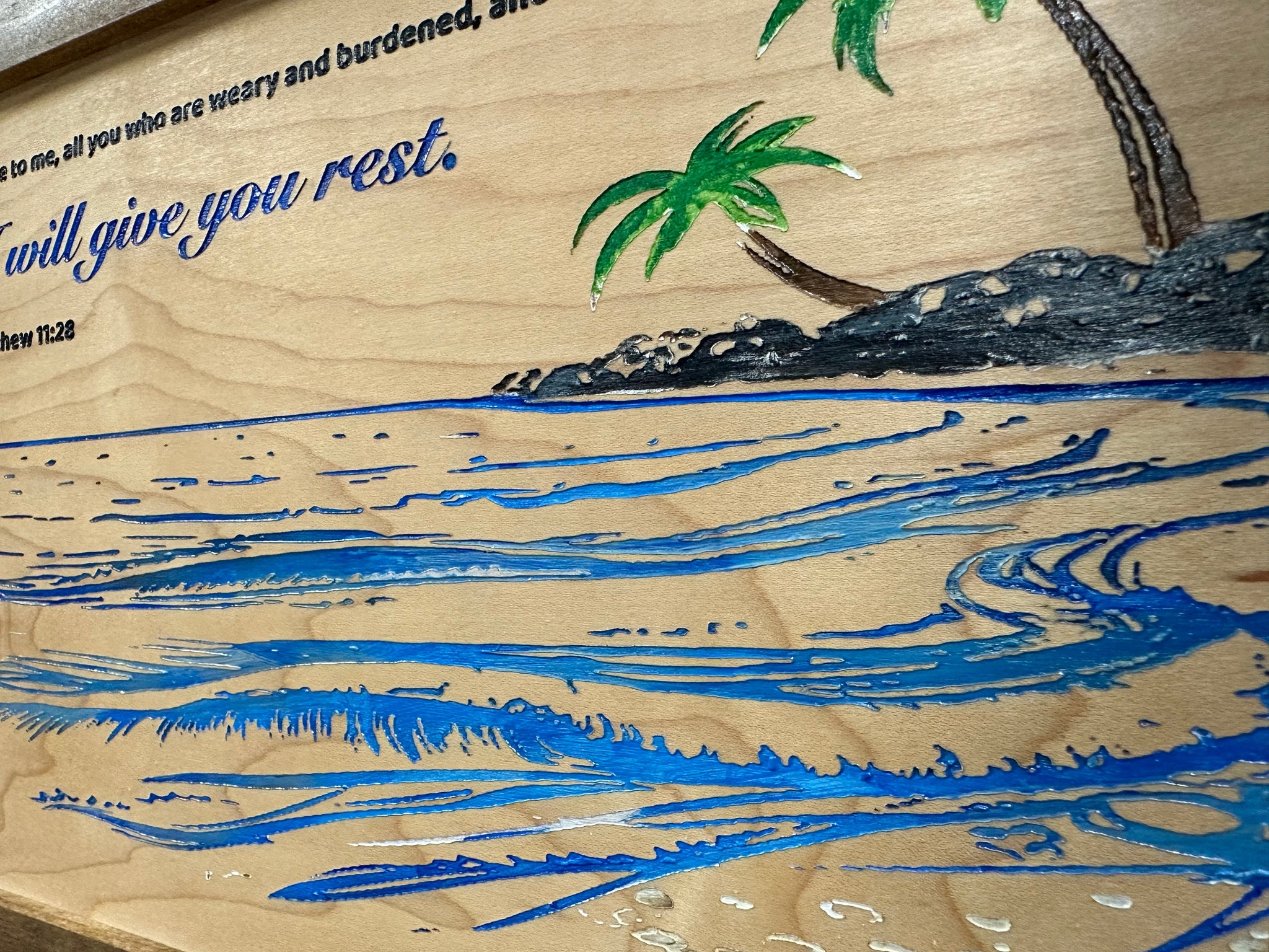 Securely store your gun and other home self defense gear inside the Bellewood Designs Bible Verse Matthew 11:28 and Coastal Scene Decorative & Secure Wall-Mounted Gun Cabinet. The Matthew 11:28 Bible Verse "Come to me, all you who are weary and burdened, and I Will Give You Rest" is included on the front along with a peaceful coastal scene. This decorative bible verse gun cabinet will be a beautiful addition to your homes decor, make a bold statement about your faith and know one will know what's inside! Your firearm and other tactical gear is easily accessible yet securely stored, so you'll never have to worry about leaving it unattended.