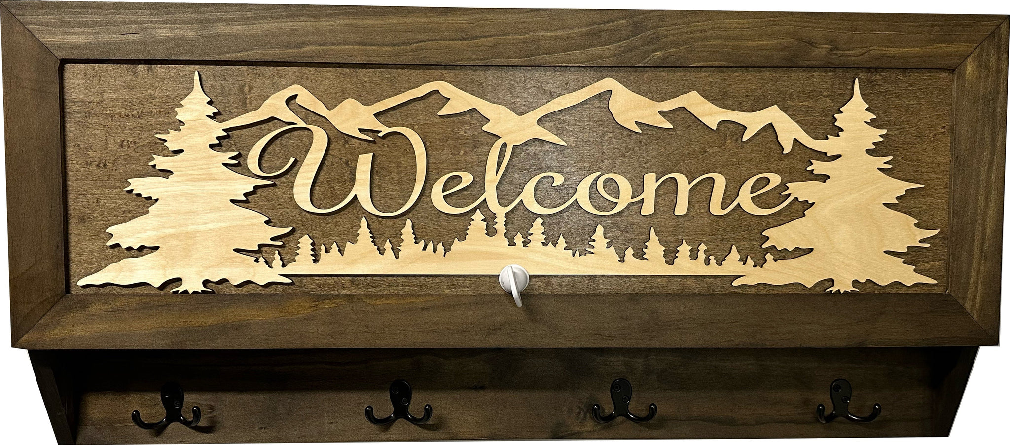 The Bellewood Designs Coat Rack Hidden Gun Storage - Welcome is the perfect blend of beautiful home decor and functionality. Our hidden gun coat racks are handmade in the U.S.A. featuring unique designs that blend in with your home decor. Not only will they be a focal point in your home they are functional coat racks and no one will ever know your guns and other personal protection is securely store inside! The magnetic lock allows for quick access, while the customizable foam ensures a perfect fit for your firearms. With dimensions of 38"x16"x4", it is a discreet and functional addition to any space.