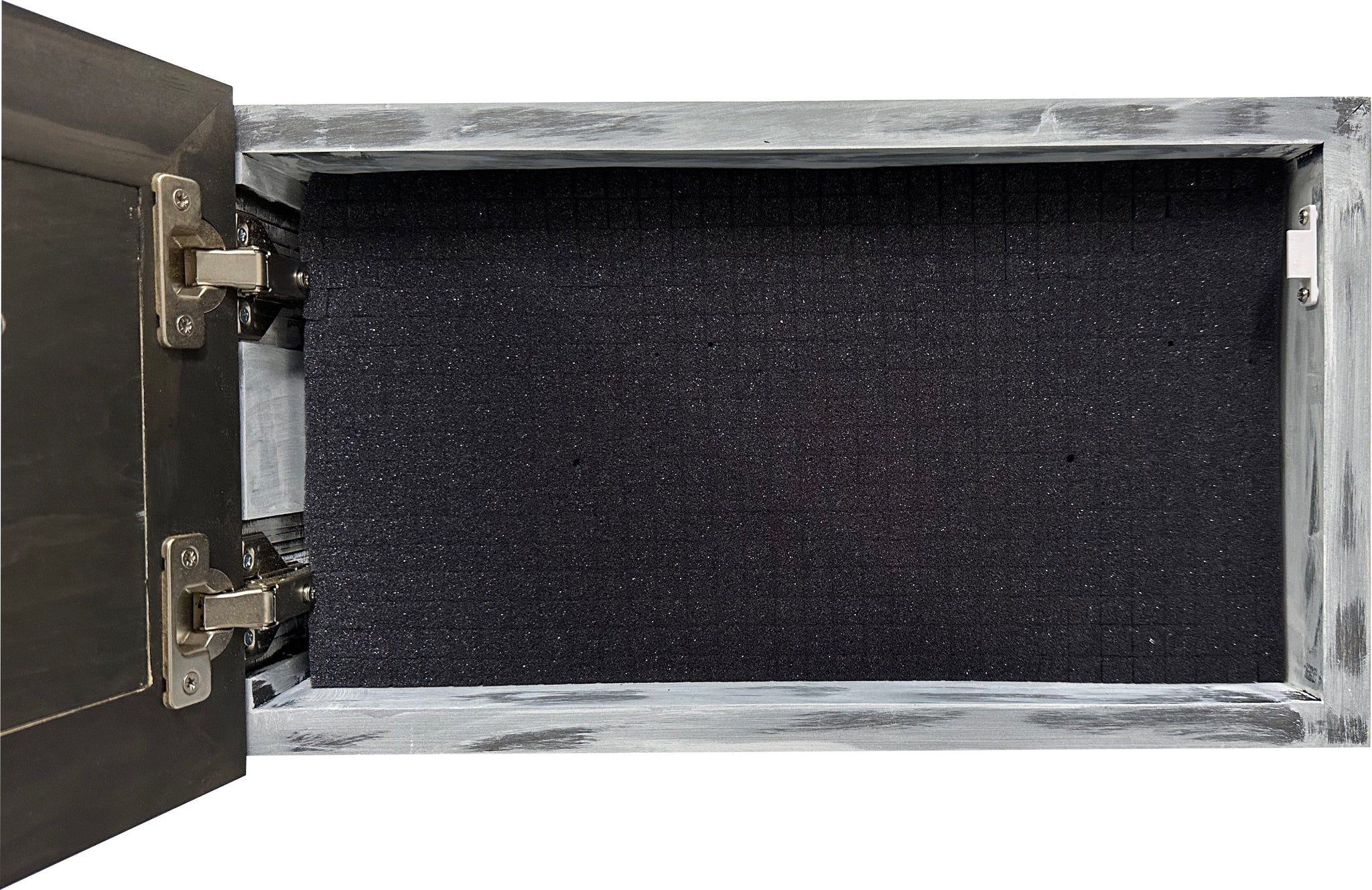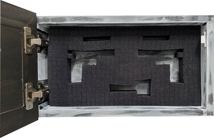 Securely store your firearm in plain sight with the Bellewood Designs Decorative Cow Farm Wall-Mounted Secure Gun Cabinet. Your firearm and other tactical gear is easily accessible yet securely stored, so you'll never have to worry about leaving it unattended. Once you apply the key the lock immediately disengages and you're ready for self defense. This cabinet features a black frame, black distressed background and box and an eye-catching black 3D cow farm. The cabinet will be a focal point of any room and no one will ever know what's inside!