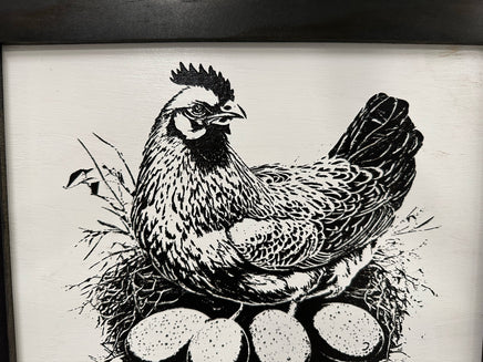 - Nature and Wildlife Series - Black and White Farmhouse Chicken and Eggs Hidden Gun Cabinet. Recess in the wall or mount on the wall.