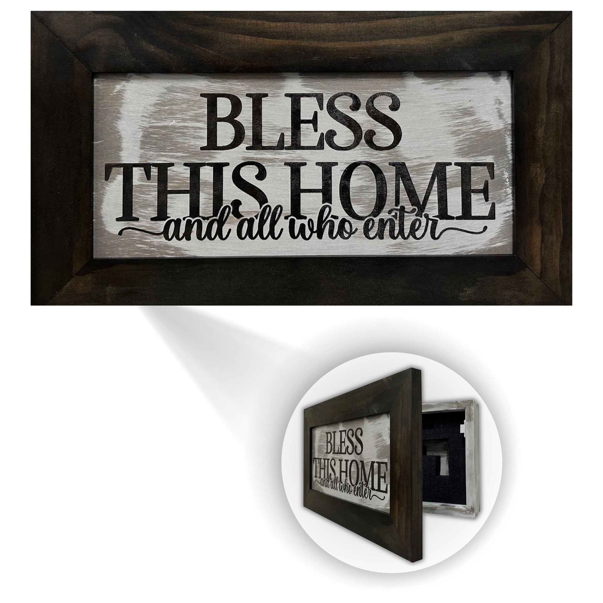 FUNCTIONAL & BEAUTIFUL: Our Bless This Home And All Who Enter gun concealment furniture doubles as home decor — merging artistic design with secure functionality. Made in the USA and built to last, its hidden gun safe craftsmanship for those who value purpose, beauty, and protection in one.