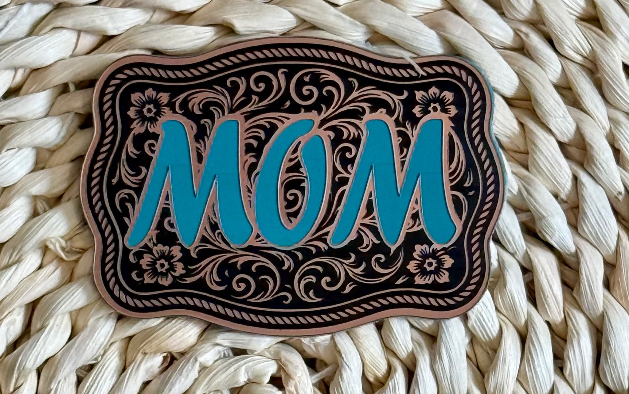 Home → 2 CC Hat Patches Collection → Mom Scroll Design Acrylic Laser Engraved Hat Patch