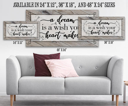 A Dream Is A Wish - Large Canvas (Not Printed on Wood) -Stretched on Wood Frame-Perfect Headboard-Housewarming, Anniversary and Wedding Gift