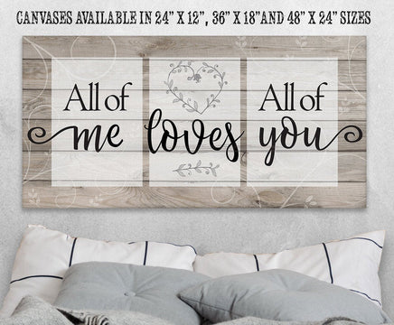 All Of Me Loves All Of You - Large Canvas Wall Art (Not Printed on Wood) - Stretched on a Heavy Wood Frame - Perfect Above a Couch or Headboard - Great Housewarming and Wedding Gift
