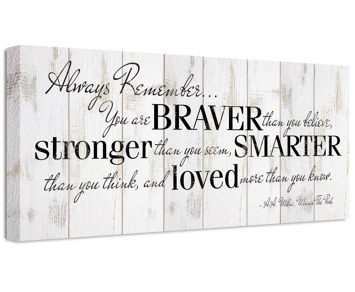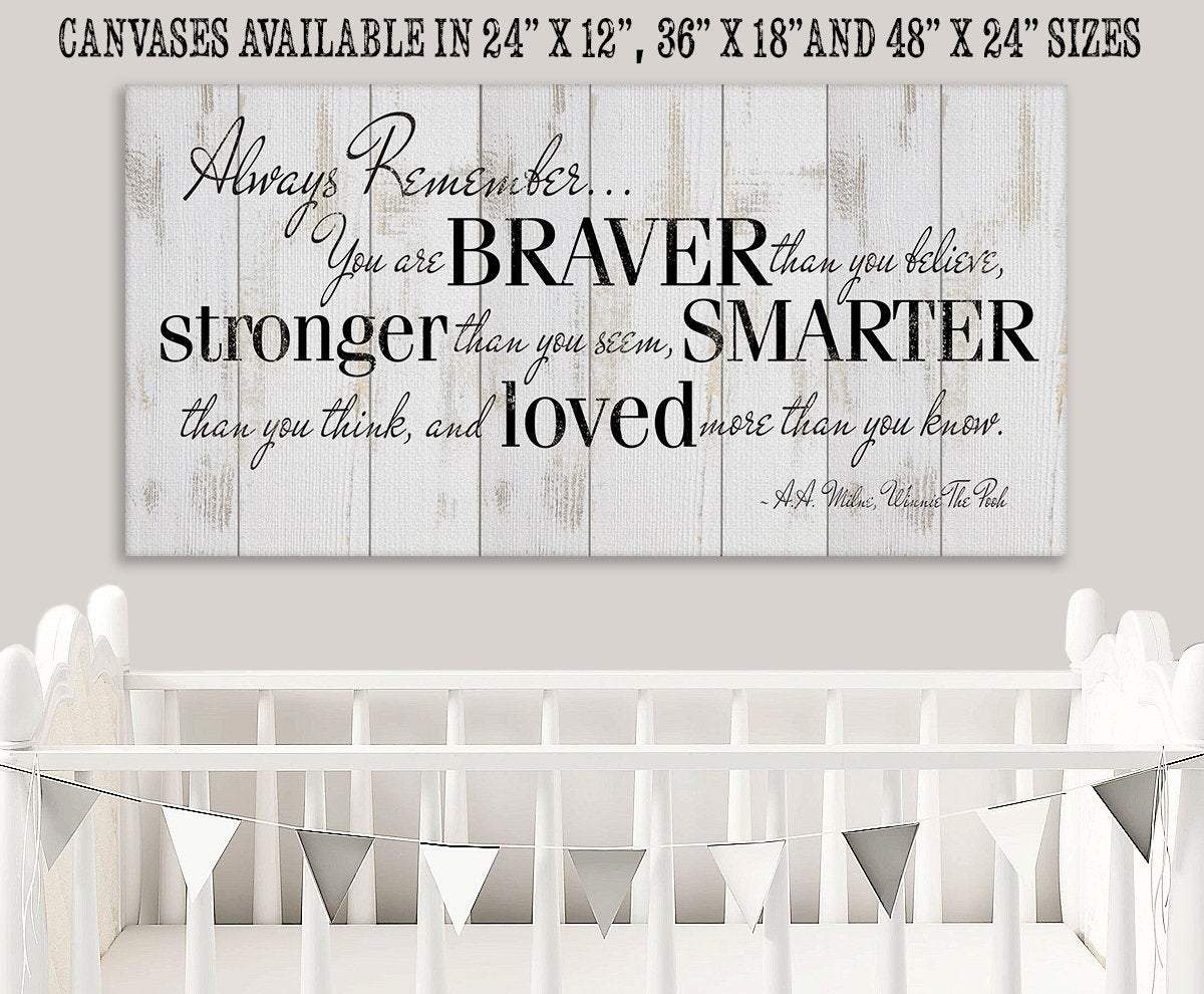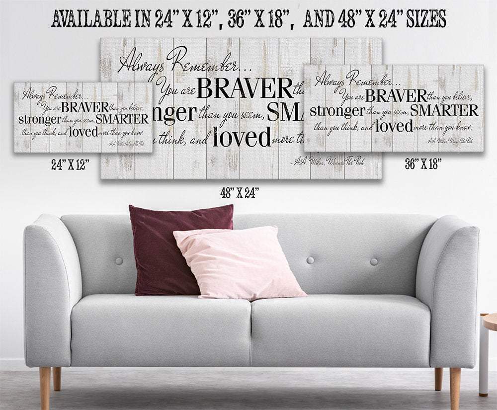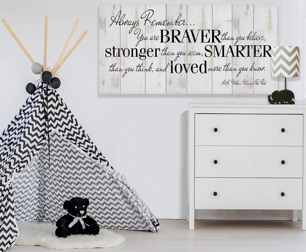 Always Remember You Are Braver - Large Canvas Wall Art (Not Printed on Wood)-Stretched on a Heavy Wood Frame-Nursery Decor-Baby Shower Gift