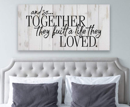And So Together They Built - Large Canvas (Not Printed on Wood) - Stretched on Wood-Above a Couch or Headboard-Housewarming and Wedding Gift