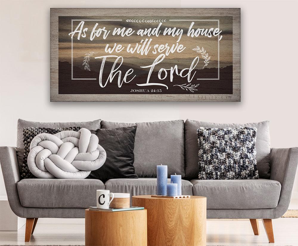 As For Me And My House - Large Canvas Wall Art - Stretched on a Heavy Wood Frame - Ready to Hang - Perfect Above a Couch and for Living Room Decor - Great Housewarming and Wedding Gift