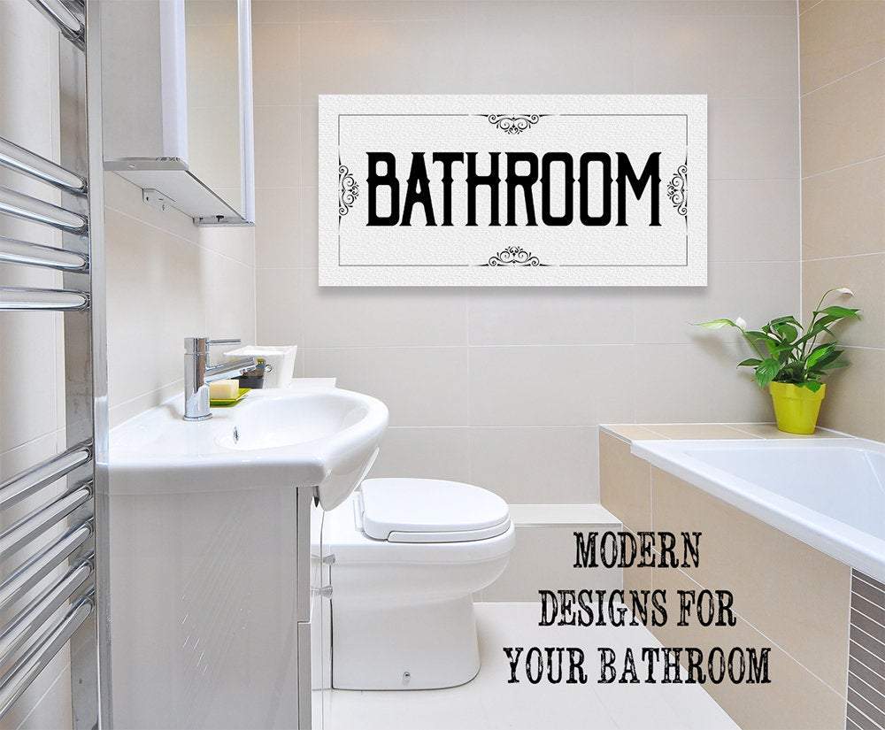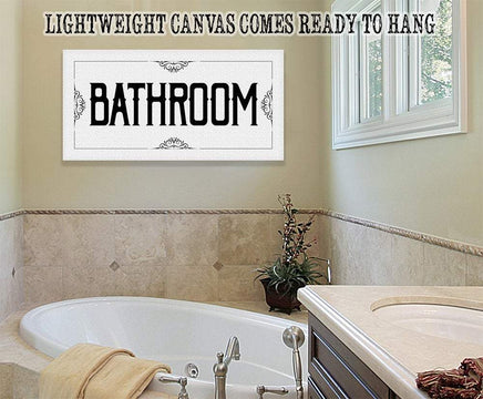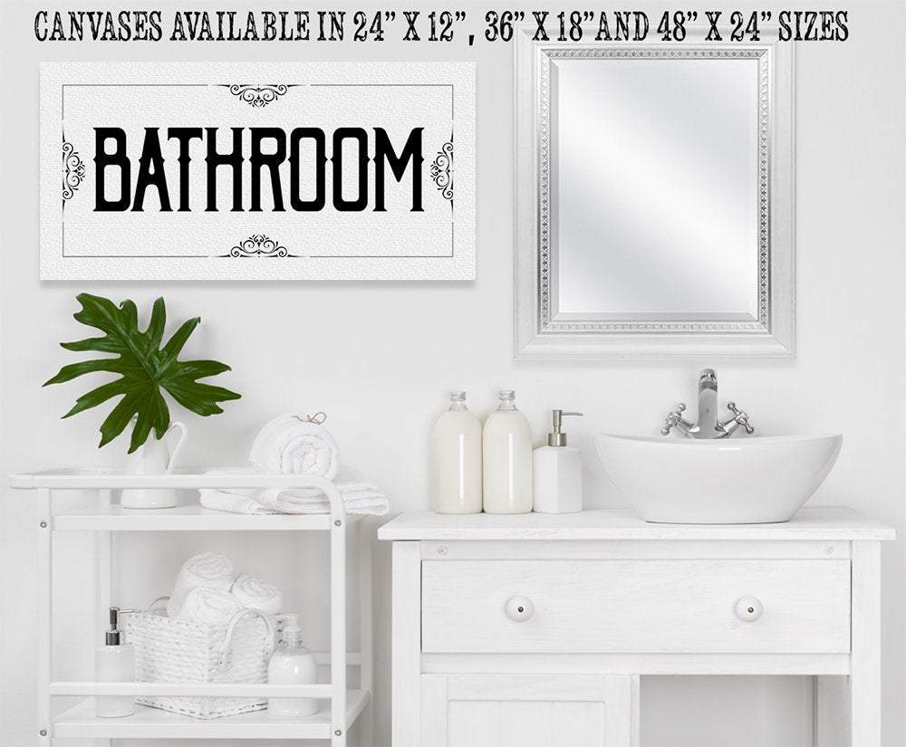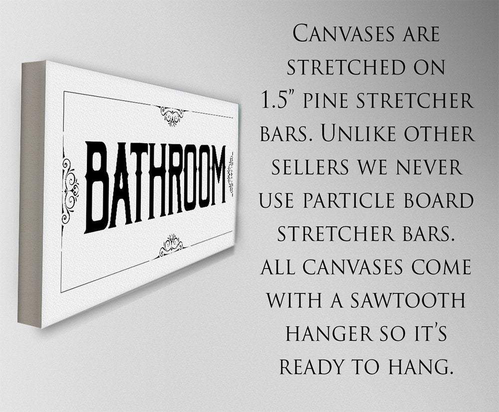 Bathroom - Large Black and White Canvas Wall Art-Stretched on a Heavy Wood Frame-Ready to Hang-Bathroom Decor-Housewarming and Wedding Gift Bring an elegant touch to any room! This large, vivid colored artwork adds the perfect focal point to any room.UPDATED DESIGNS - We created this design to be on trend with an elegant, timeless style that will greatly complement your homeMADE IN AMERICA - All our canvas artwork is hand-stretched by our employees in Tomball, Texas. We take pride in doing the work here and doing it right.REAL WOOD - We only use real pine 1.5" stretcher bars. We never use cheap particleboard stretcher bars like other sellers.PREMIUM CANVAS - So much of what goes into the final reproduction depends on the quality and consistency of the canvas. We only use acid-free, heavy canvas, which is not only durable but will not degrade over time. The surface has been specially prepared to accept and hold the inks, allowing them to radiate the brilliant color.PREMIUM INKS - The canvas is printed one at a time with the finest UV resistant inks using the latest high-resolution giclee printers. As the ink is laid on the matched and coated canvas, the result is an absolutely opaque, rich and brilliant reproduction. In addition, the UV properties of the ink ensure a fade-resistant, long-lasting beautiful image for decades.HAND STRETCHED - To ensure that the canvas remains taught, it is hand stretched around hardwood stretcher bars, fixed using no less than one staple per inch.THE ART - Now that you know how much effort goes into each piece, itâs time to do the most important stepâ¦selecting your favorite image... Click the Select Options button to start your order