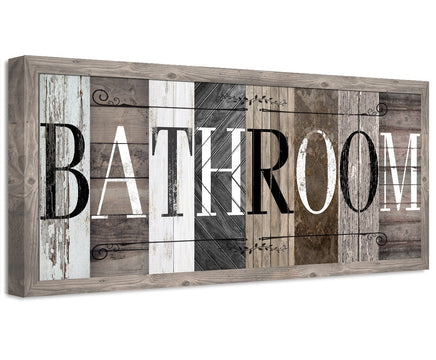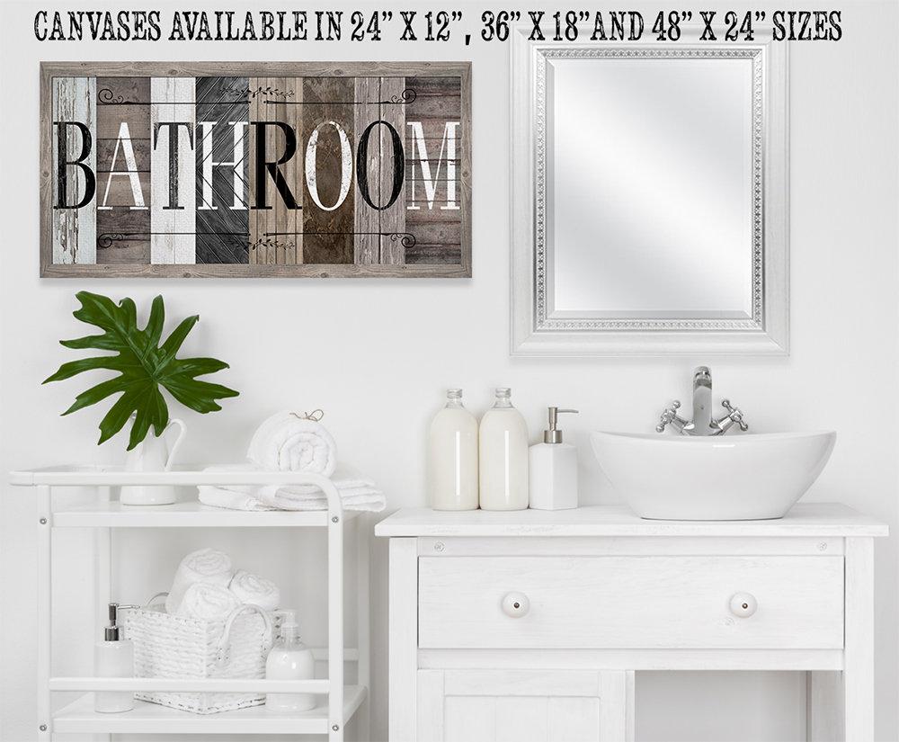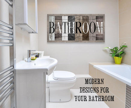 Bathroom in Multi Pattern-Large Canvas Wall Art(Not Printed on Wood)-Stretched on Heavy Wood Frame-Perfect Bathroom Decor-Housewarming GiftBring an elegant touch to any room! This large, vivid colored artwork adds the perfect focal point to any room.UPDATED DESIGNS - We created this design to be on trend with an elegant, timeless style that will greatly complement your homeMADE IN AMERICA - All our canvas artwork is hand-stretched by our employees in Tomball, Texas. We take pride in doing the work here and doing it right.REAL WOOD - We only use real pine 1.5" stretcher bars. We never use cheap particleboard stretcher bars like other sellers.PREMIUM CANVAS - So much of what goes into the final reproduction depends on the quality and consistency of the canvas. We only use acid-free, heavy canvas, which is not only durable but will not degrade over time. The surface has been specially prepared to accept and hold the inks, allowing them to radiate the brilliant color.PREMIUM INKS - The canvas is printed one at a time with the finest UV resistant inks using the latest high-resolution giclee printers. As the ink is laid on the matched and coated canvas, the result is an absolutely opaque, rich and brilliant reproduction. In addition, the UV properties of the ink ensure a fade-resistant, long-lasting beautiful image for decades.HAND STRETCHED - To ensure that the canvas remains taught, it is hand stretched around hardwood stretcher bars, fixed using no less than one staple per inch.THE ART - Now that you know how much effort goes into each piece, it’s time to do the most important step…selecting your favorite image... Click the Select Options button to start your order