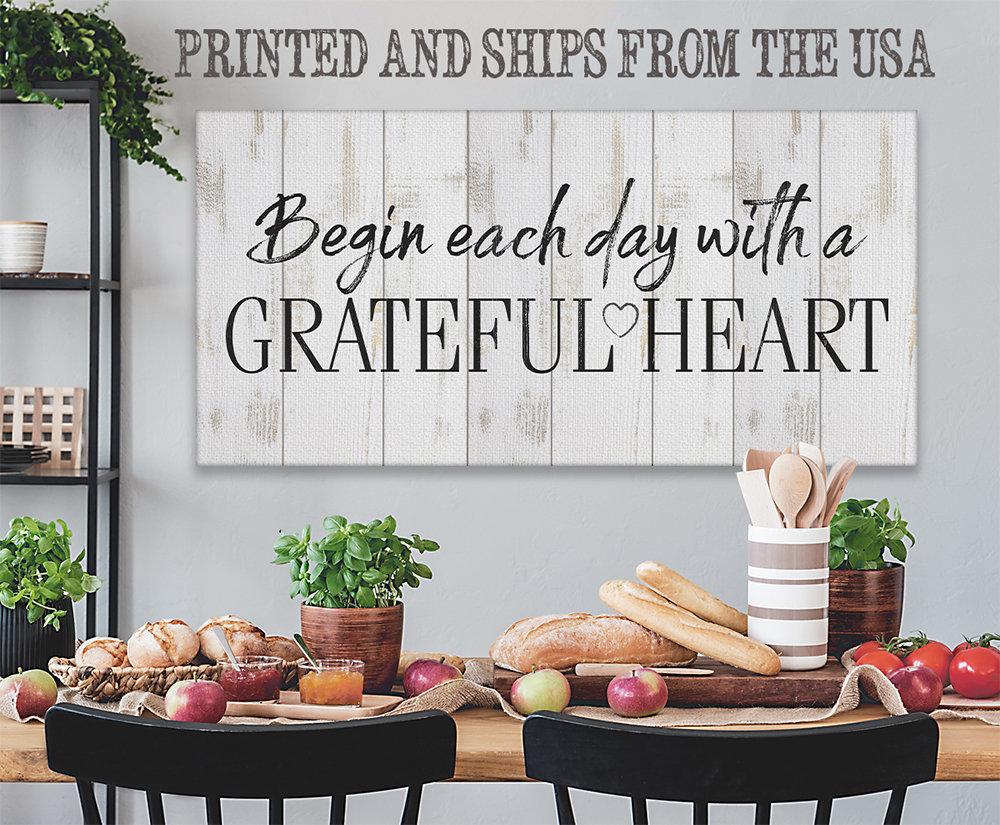 Begin Each Day-Large Canvas(Not Printed on Wood)-Stretched on a Heavy Wood Frame-Above a Couch and Dining Room Decor-Great Housewarming GiftBring an elegant touch to any room! This large, vivid colored artwork adds the perfect focal point to any room.UPDATED DESIGNS - We created this design to be on trend with an elegant, timeless style that will greatly complement your homeMADE IN AMERICA - All our canvas artwork is hand-stretched by our employees in Tomball, Texas. We take pride in doing the work here and doing it right.REAL WOOD - We only use real pine 1.5" stretcher bars. We never use cheap particleboard stretcher bars like other sellers.PREMIUM CANVAS - So much of what goes into the final reproduction depends on the quality and consistency of the canvas. We only use acid-free, heavy canvas, which is not only durable but will not degrade over time. The surface has been specially prepared to accept and hold the inks, allowing them to radiate the brilliant color.PREMIUM INKS - The canvas is printed one at a time with the finest UV resistant inks using the latest high-resolution giclee printers. As the ink is laid on the matched and coated canvas, the result is an absolutely opaque, rich and brilliant reproduction. In addition, the UV properties of the ink ensure a fade-resistant, long-lasting beautiful image for decades.HAND STRETCHED - To ensure that the canvas remains taught, it is hand stretched around hardwood stretcher bars, fixed using no less than one staple per inch.THE ART - Now that you know how much effort goes into each piece, itâs time to do the most important stepâ¦selecting your favorite image... Click the Select Options button to start your order