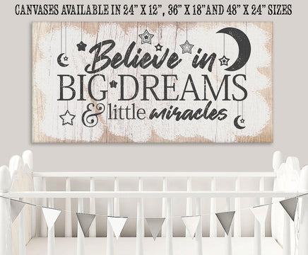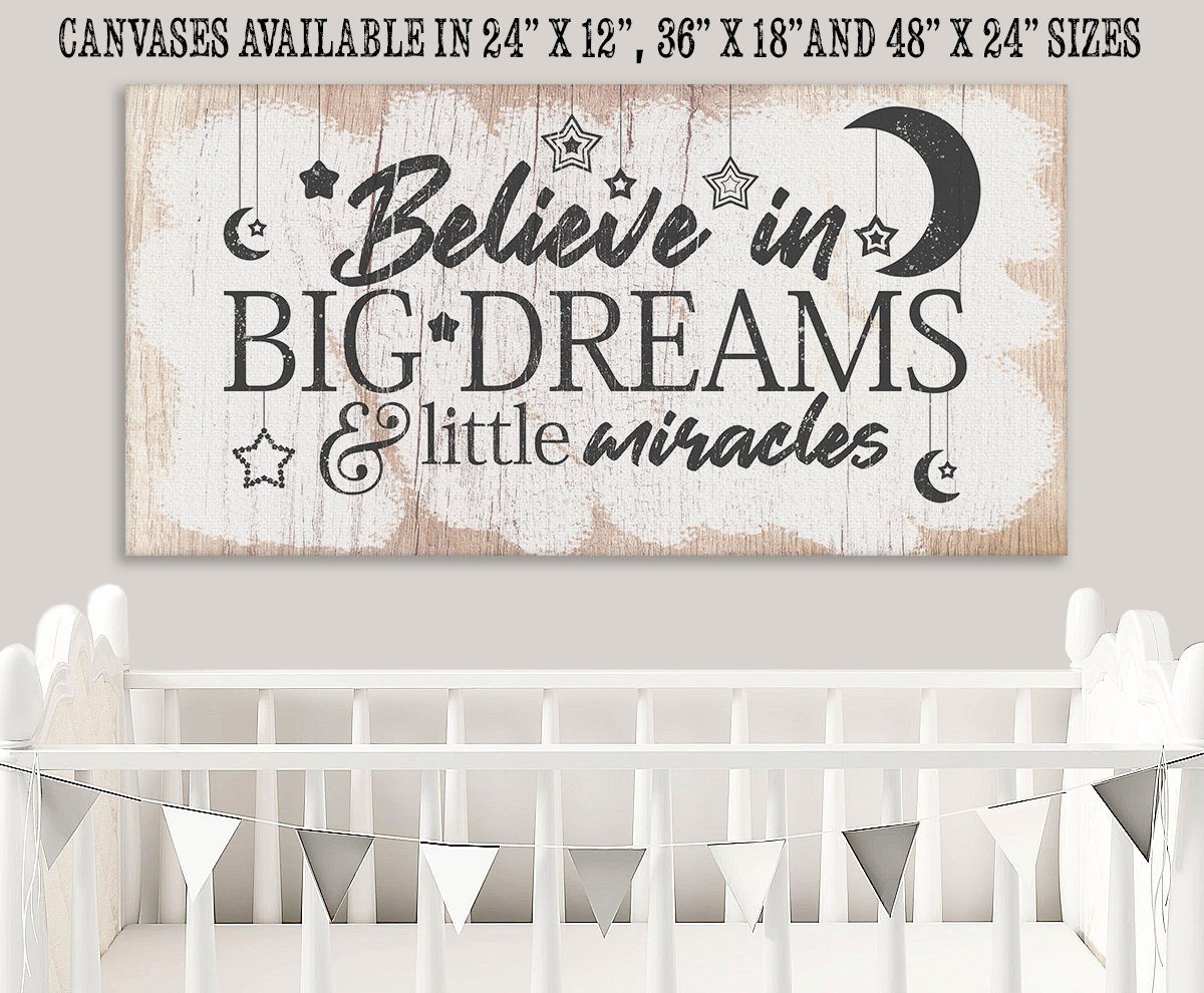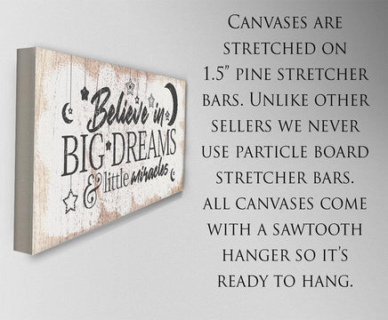 Believe In Big Dreams-Large Canvas(Not Printed on Wood)-Stretched on a Heavy Wood Frame-Perfect Nursery Decor-Makes a Great Baby Shower Gift