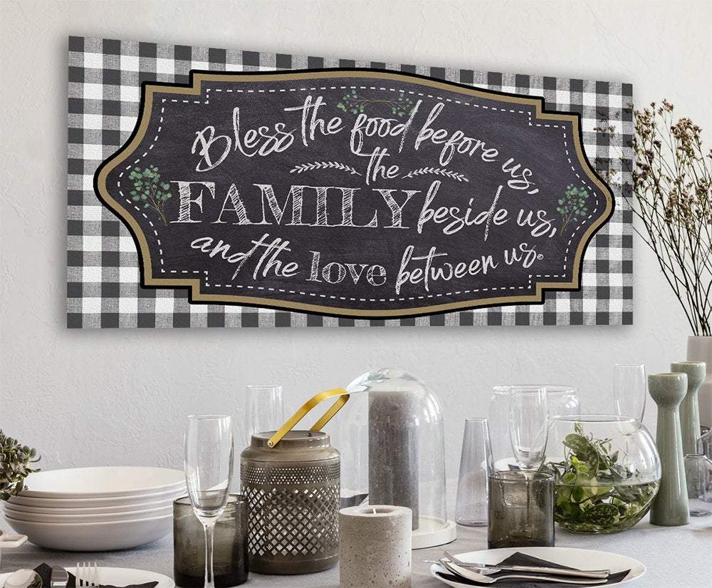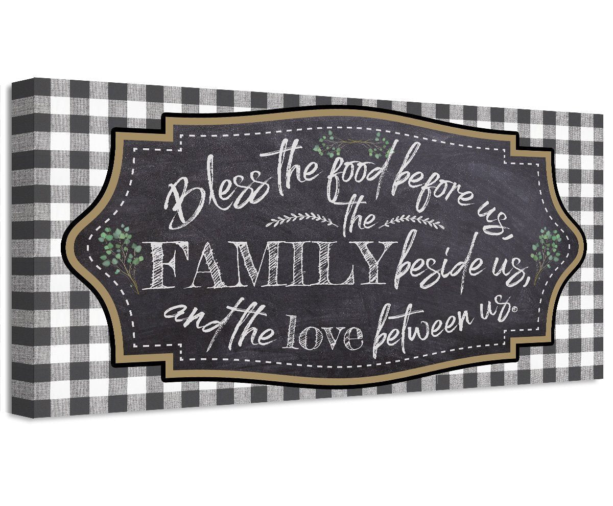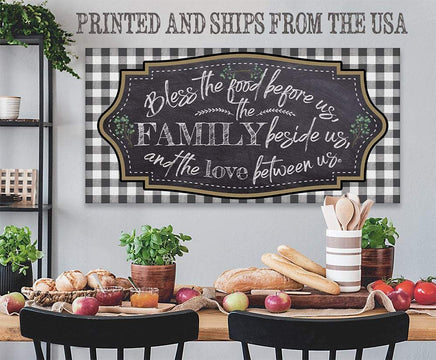 Bless The Food Before Us Large Canvas Wall Art - Stretched on a Heavy Wood Frame - Ready to Hang - Perfect Dining Room Decor - Makes a Great Housewarming Gift