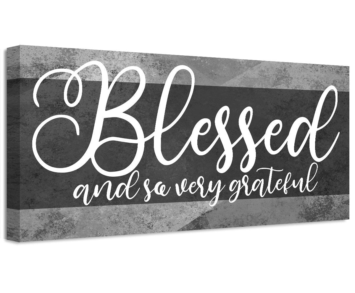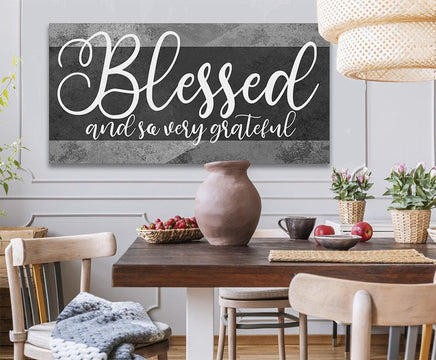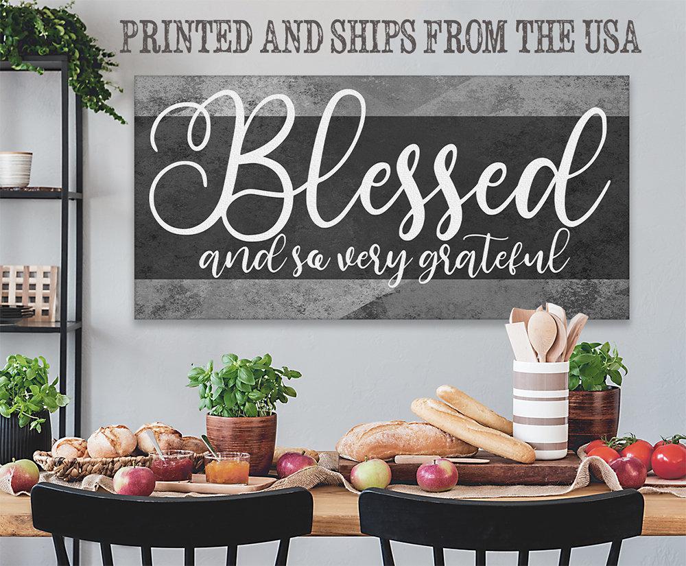 Blessed and Grateful - Large Canvas Wall Art (Not Printed on Wood) - Stretched on a Heavy Wood Frame - Perfect Above a Couch or Dining Room Decor - Great Housewarming and Wedding Gift