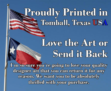 MADE IN AMERICA - All our canvas artwork is hand-stretched by our employees in Tomball, Texas. We take pride in doing the work here and doing it right.