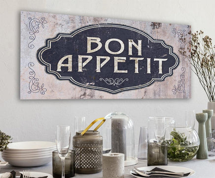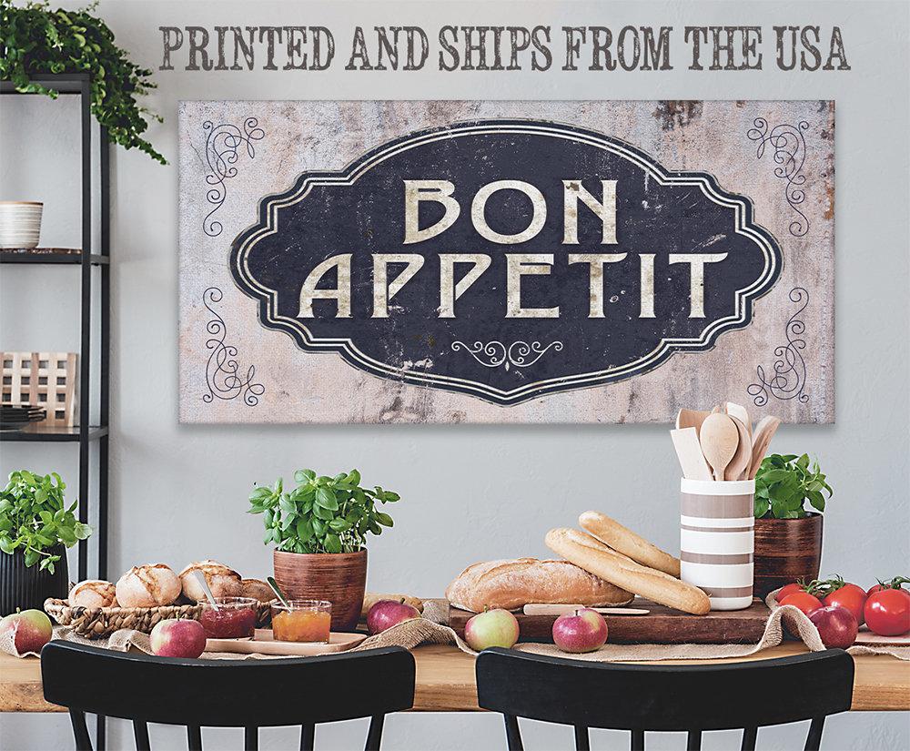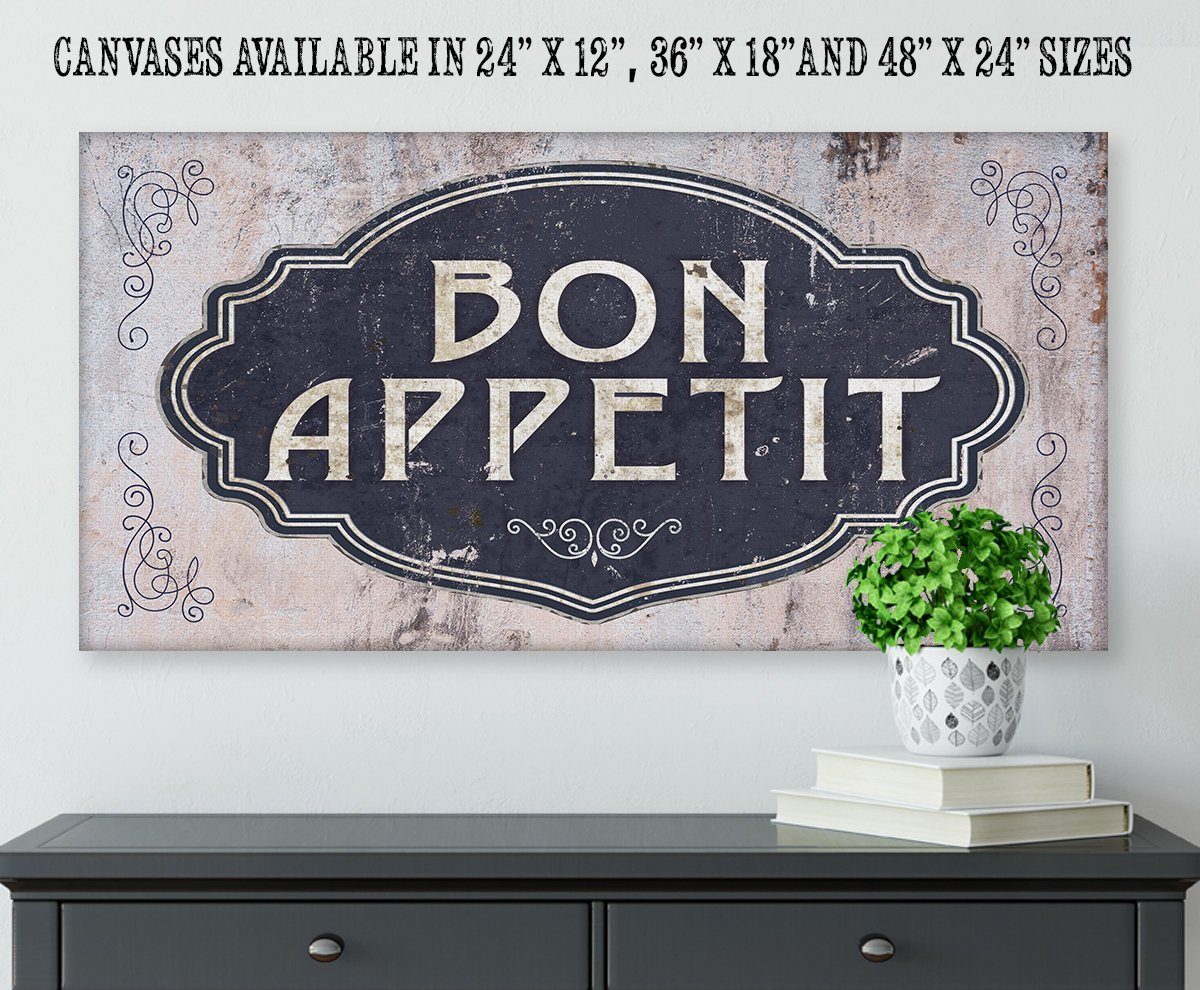 Bon Appetit -Large Canvas Wall Art-Stretched on a Heavy Wood Frame-Kitchen and Dining Room Decor-Housewarming and Gift for Restaurant Owners