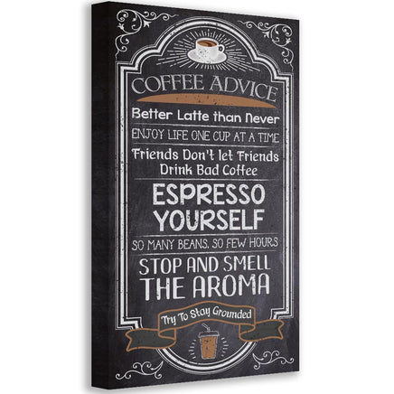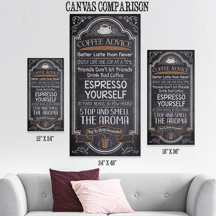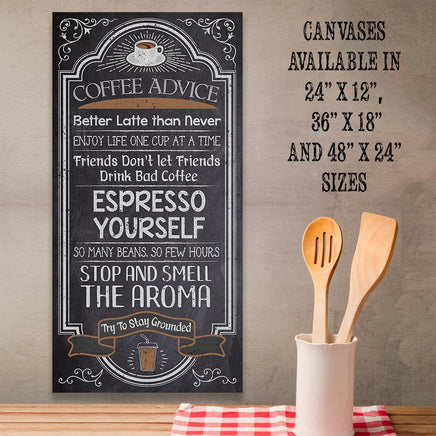 Coffee Advice-Large Canvas Wall Art(Not Printed on Wood) - Stretched on a Wood Frame