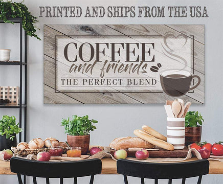 Coffee And Friends - Large Canvas (Not Printed on Wood) - Stretched on a Heavy Wood Frame-Perfect Kitchen, Dining Room and Coffee Shop Decor