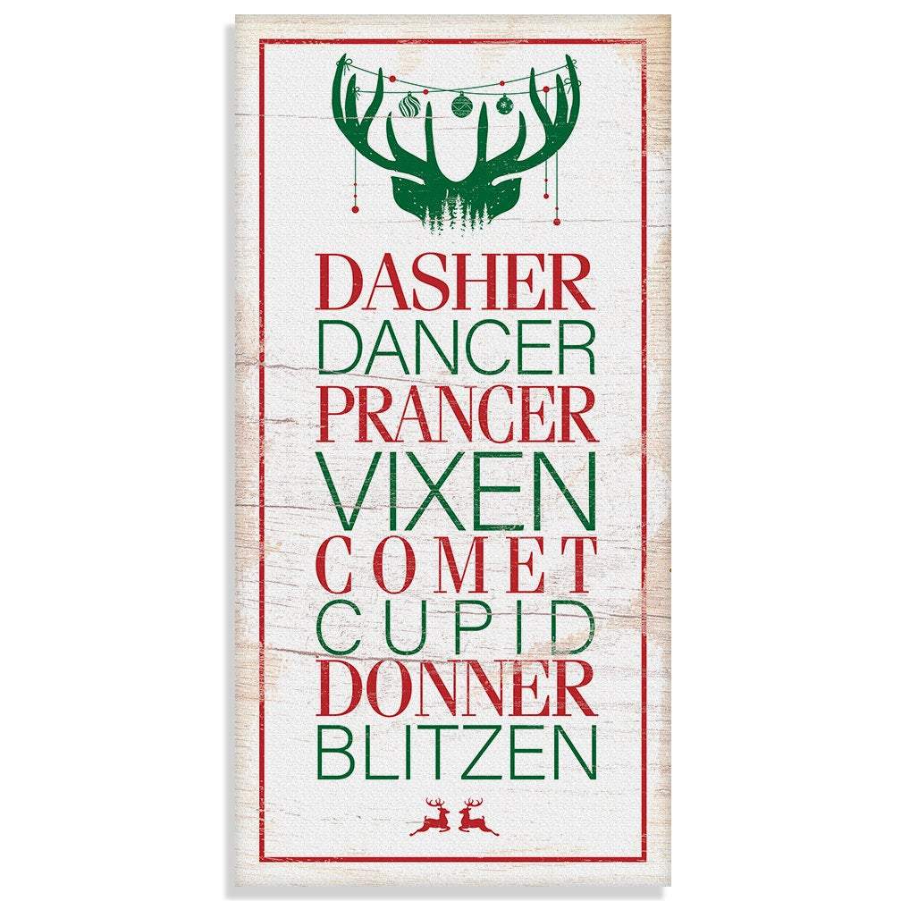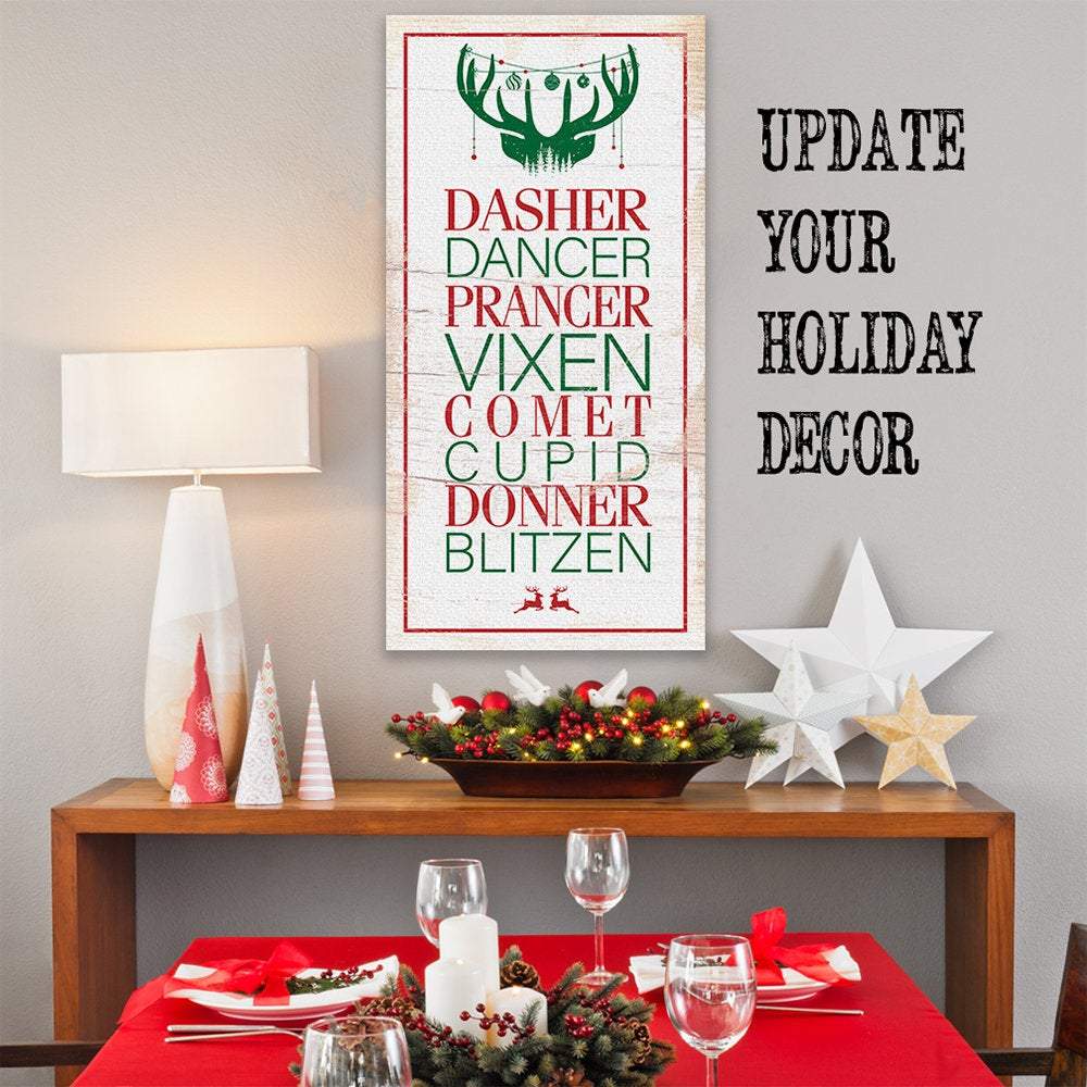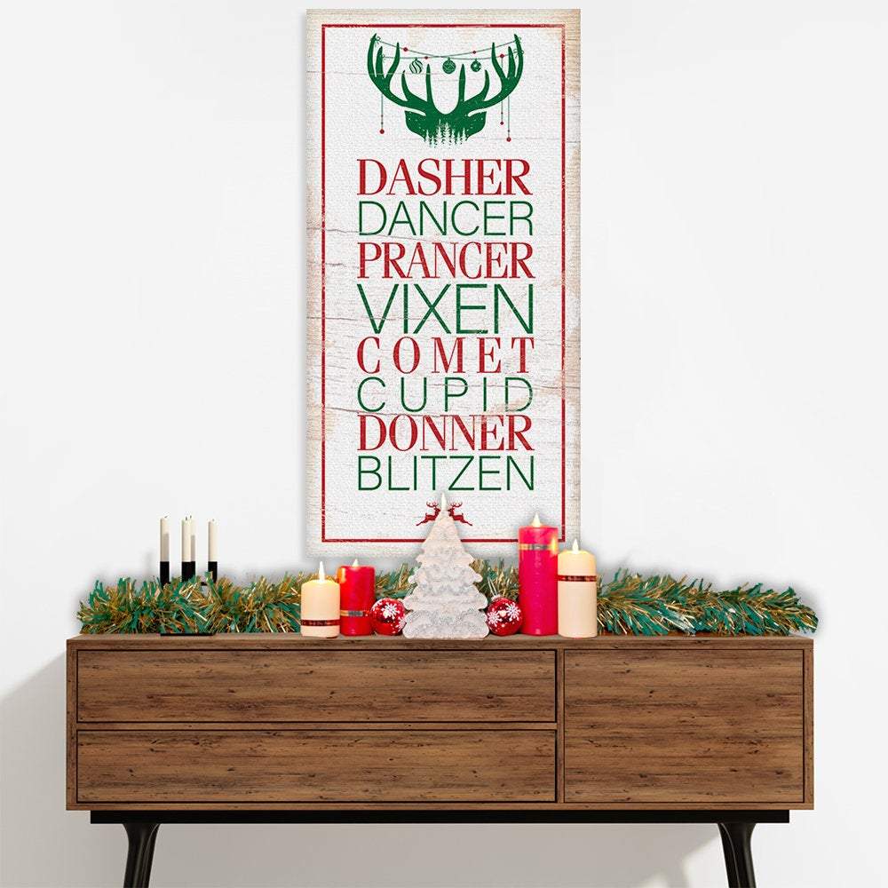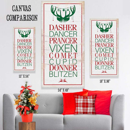 Dasher Dancer Prancer - Large Canvas Wall Art (Not Printed on Wood) - Stretched on a Heavy Wood Frame - Ready to Hang - Makes a Great Christmas Gift and Decor Under $50