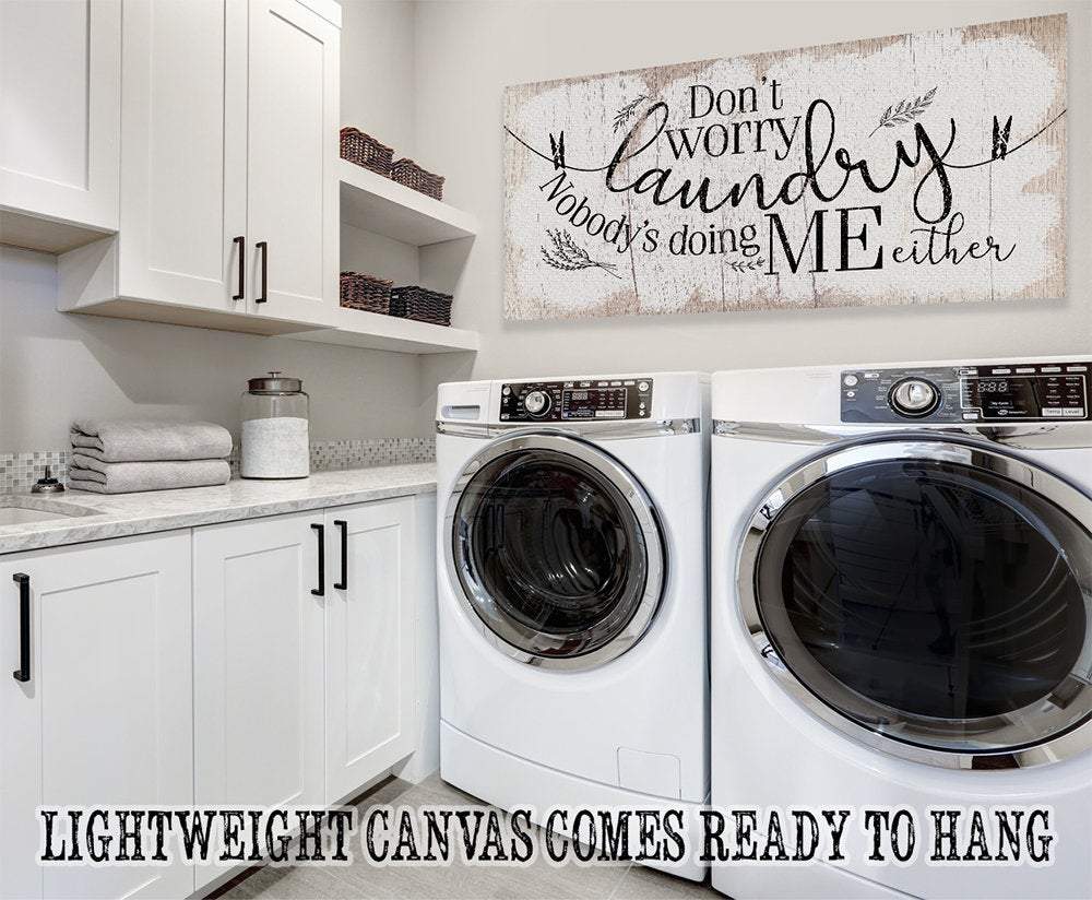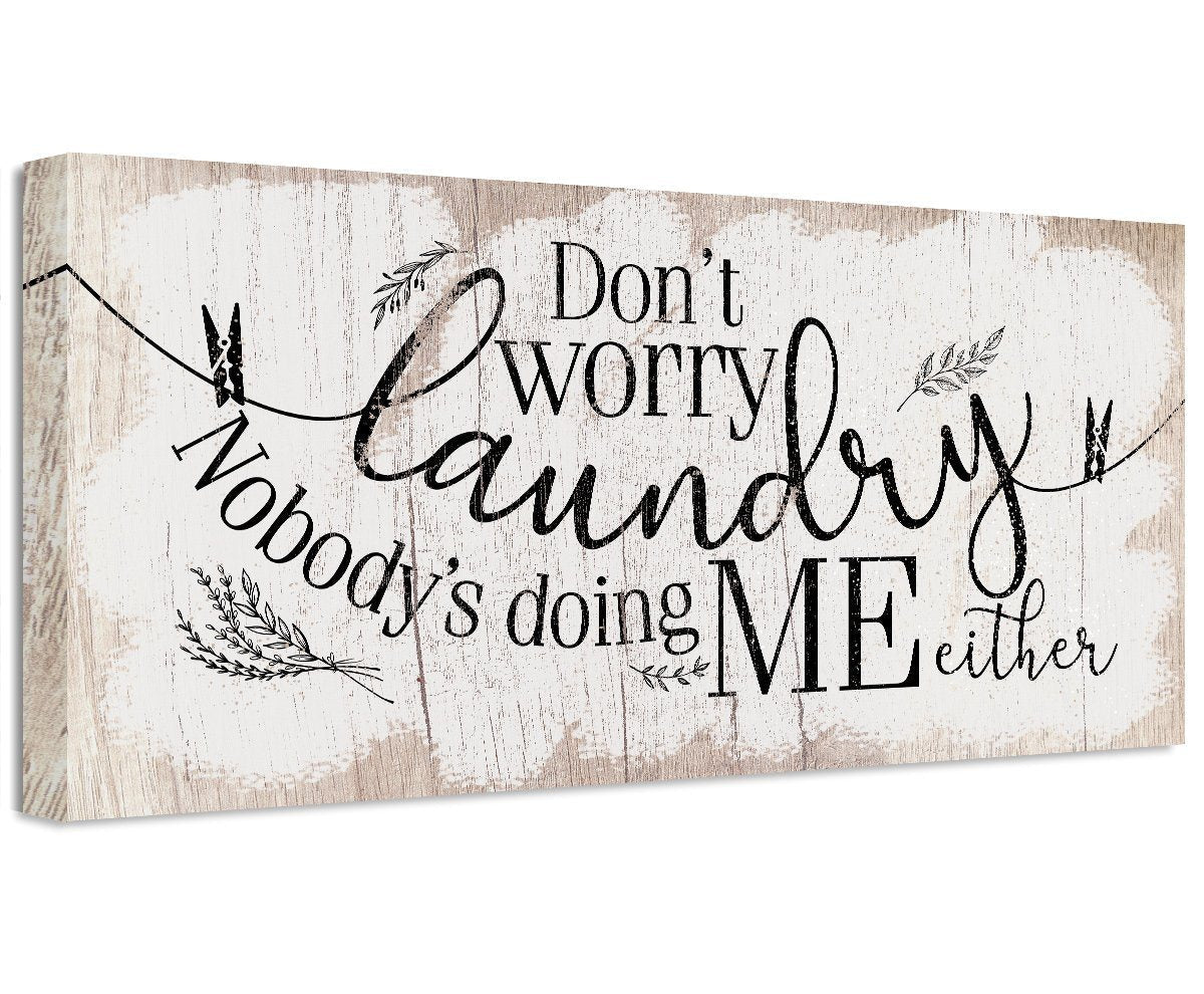 Don't Worry Laundry - Large Canvas (Not Printed on Wood) - Stretched on Wood Frame - Ready to Hang - Laundry Room Decor - Housewarming Gift